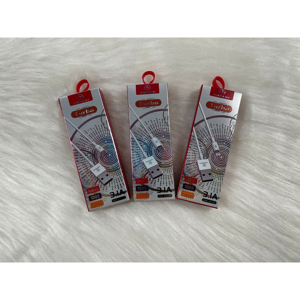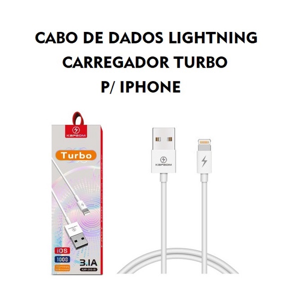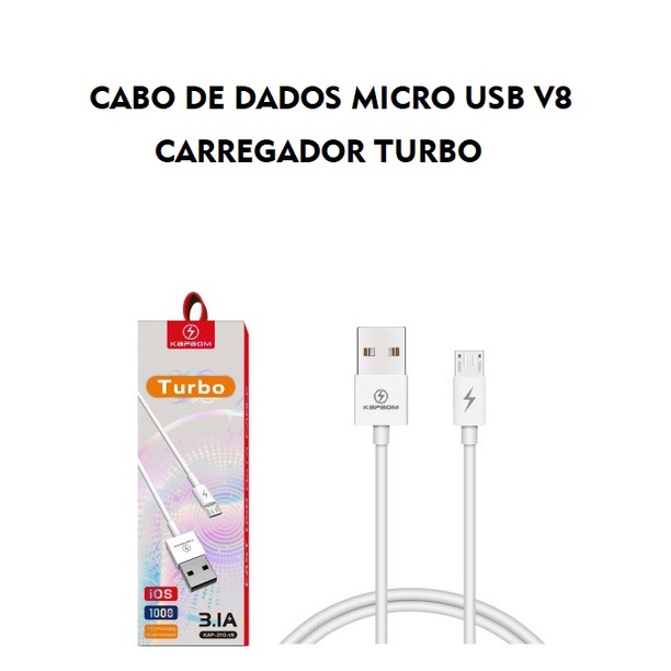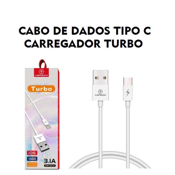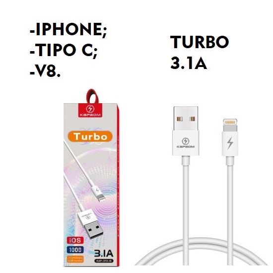 Cabo Carregador Turbo V8, Type-C, iPhone Lightning 3.1A Rápido Micro Usb 1 Metro Original Kapbom Atacado