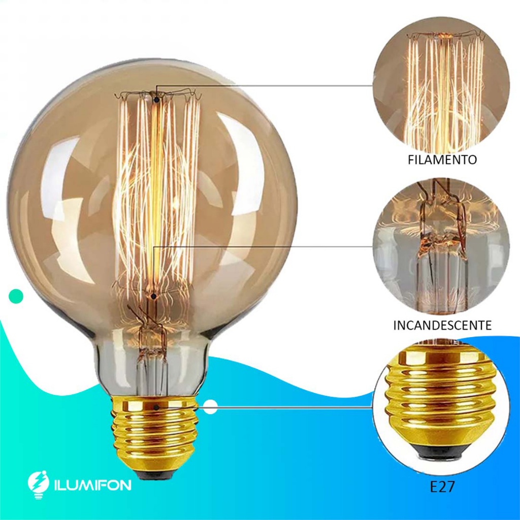 Lâmpada Filamento De Carbono Retrô G125 40w E27 decorativa