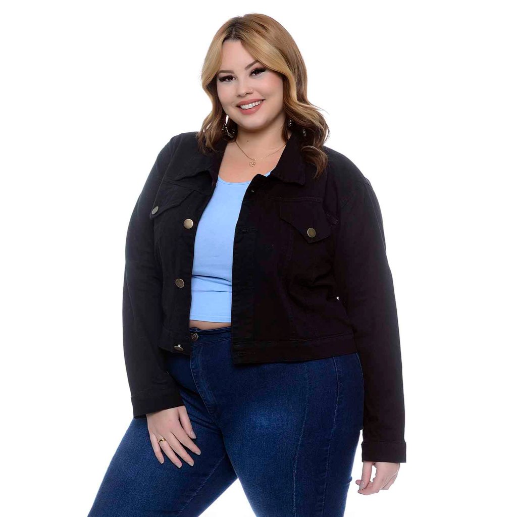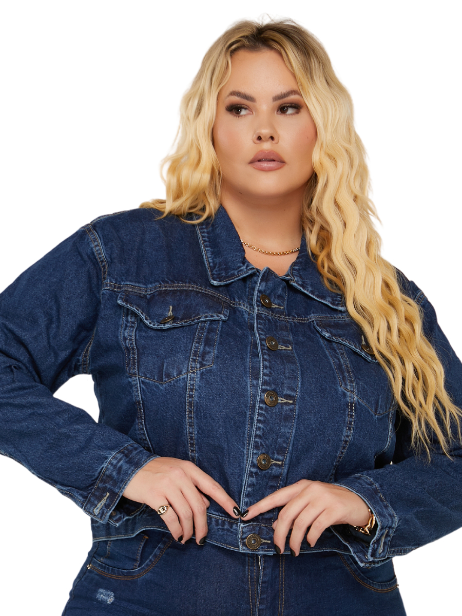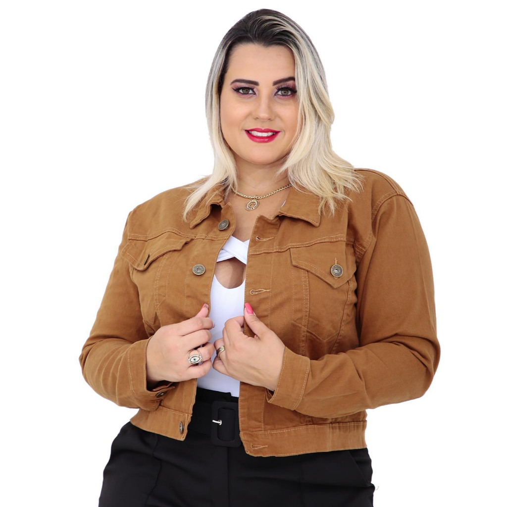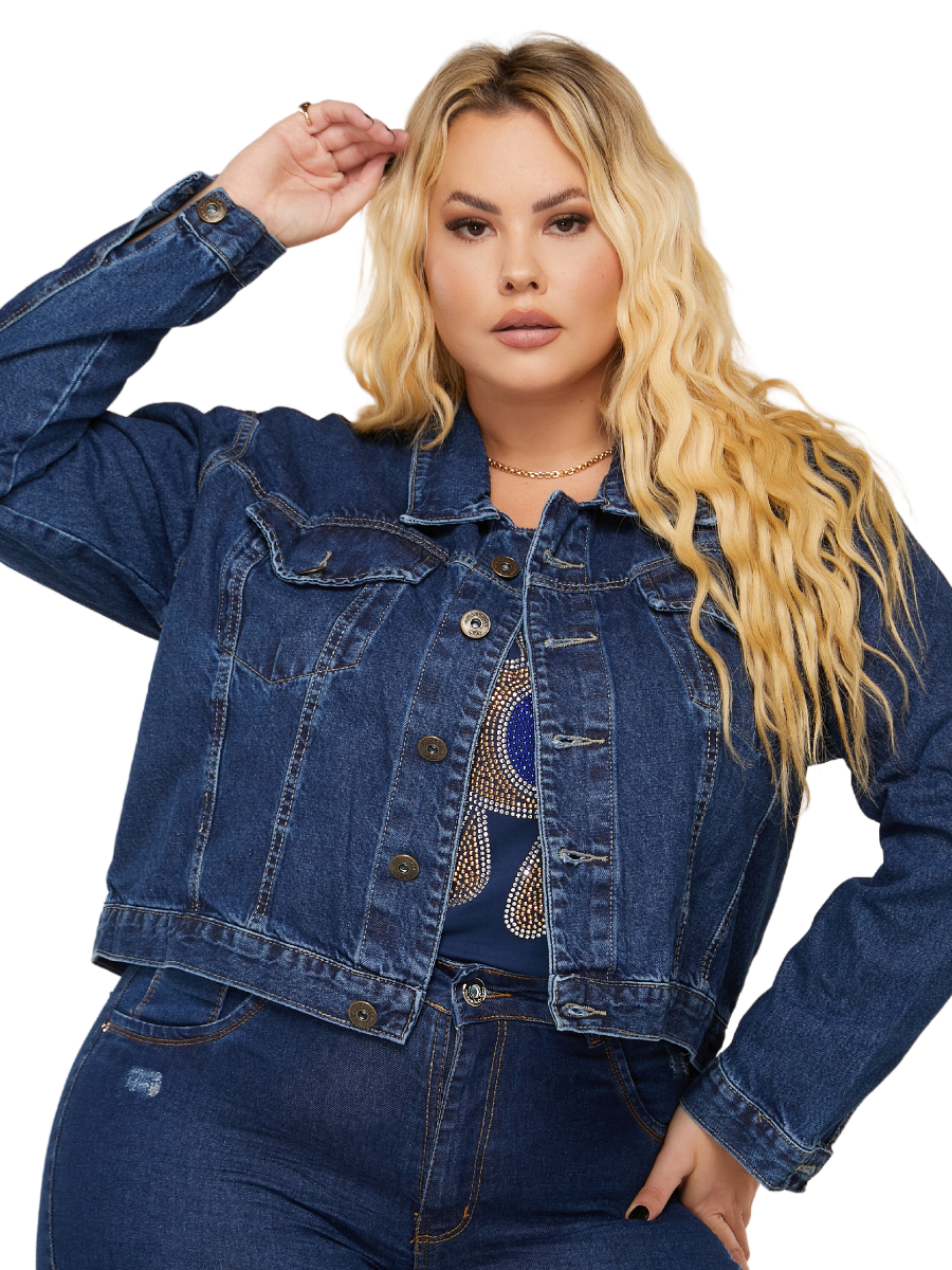 Jaqueta Jeans Cropped Feminina Plus Size Casaco