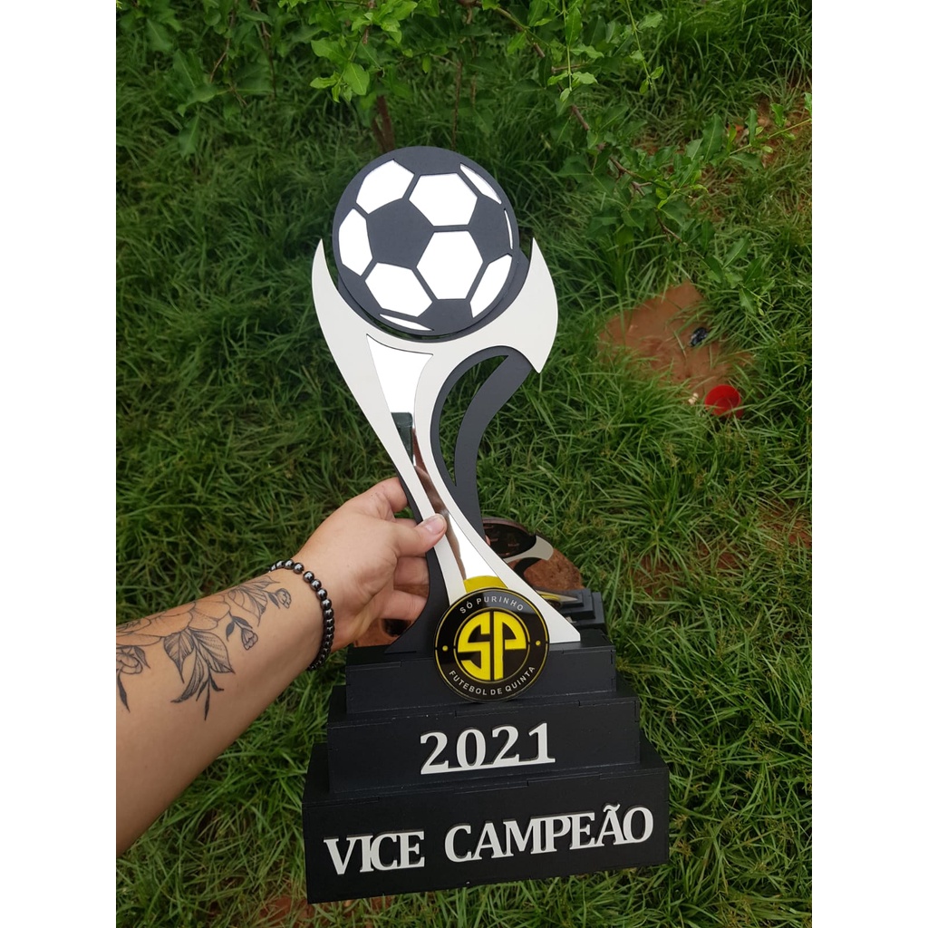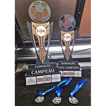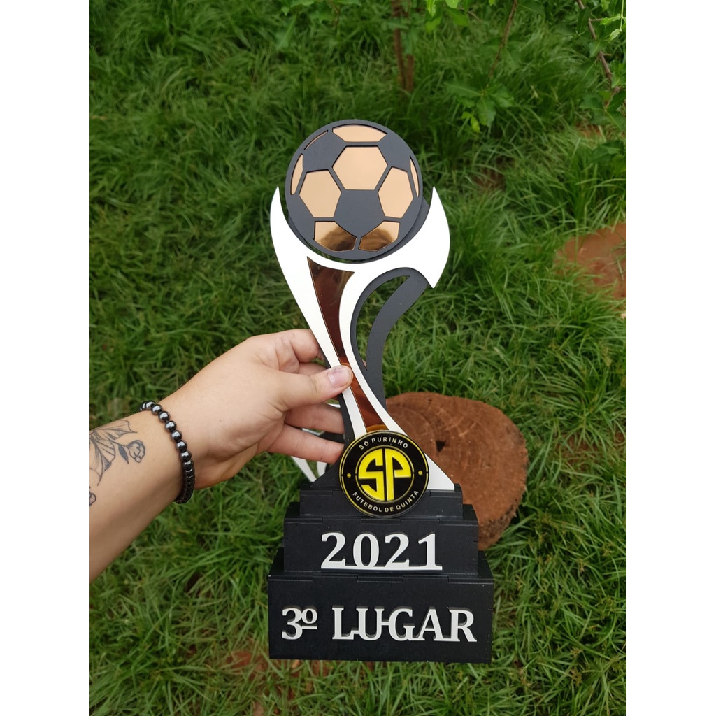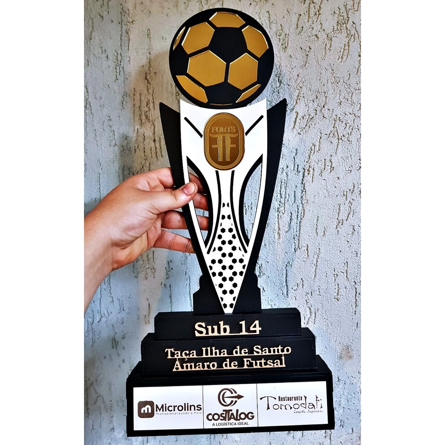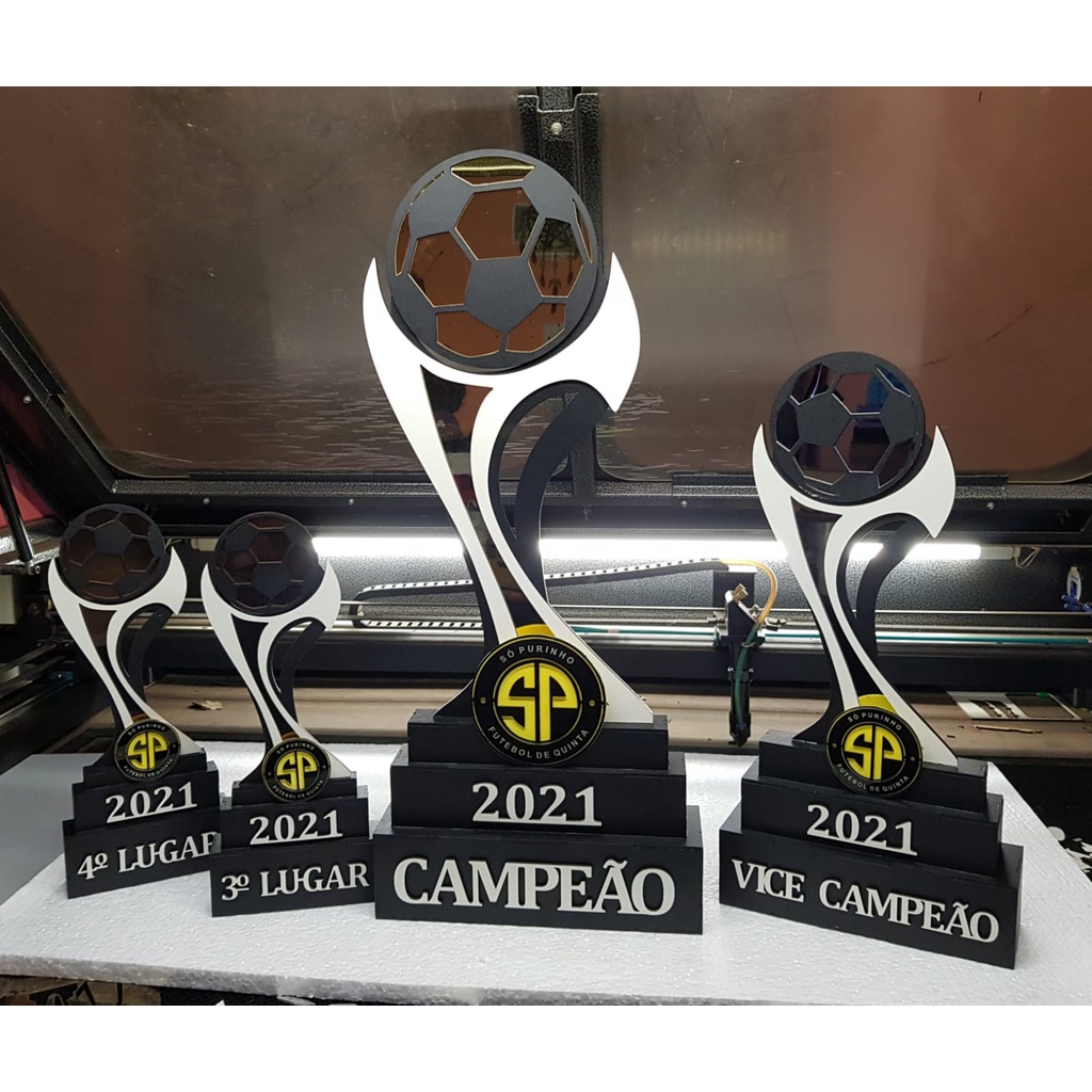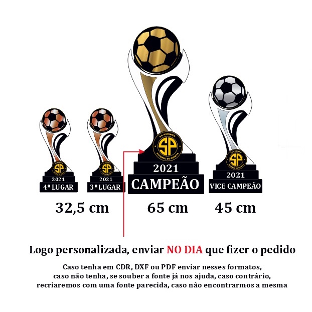 Kit 4 troféus acrilico espelhado + MDF - 1 ao 4º lugar troféu grande 65 cm 45 cm e 32 cm
