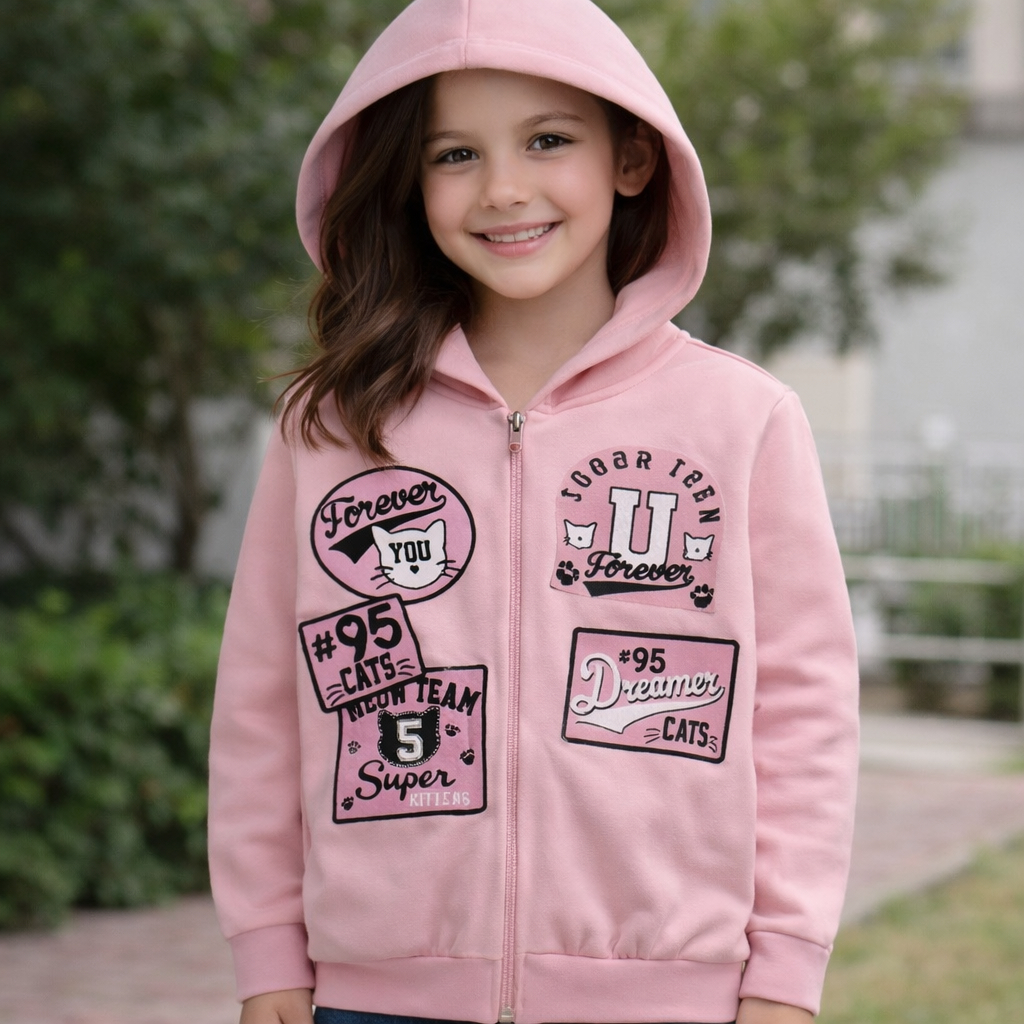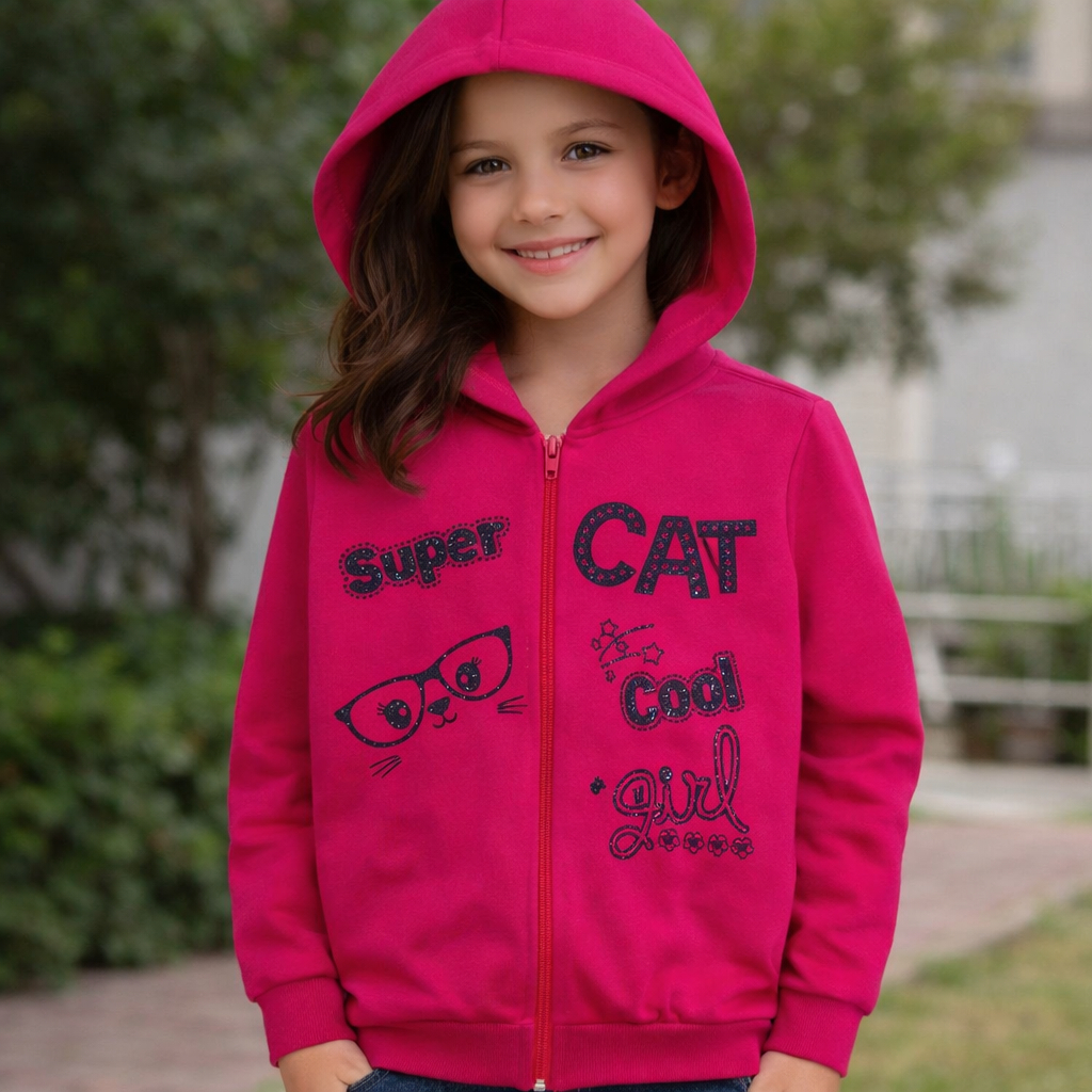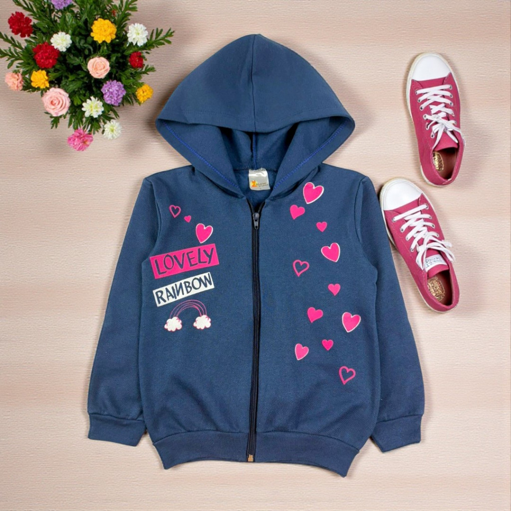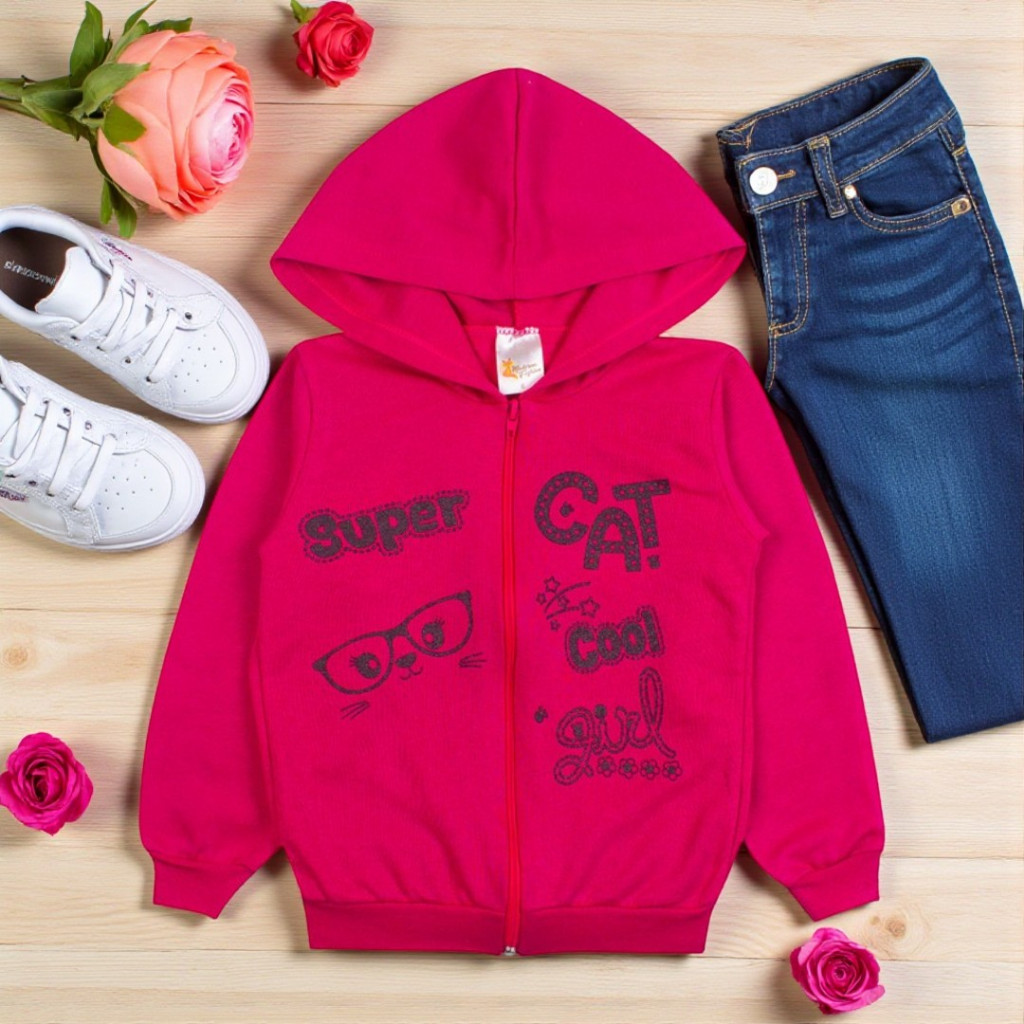 Casaco Menina Moletom Jaqueta Capuz E Zíper Roupa Frio