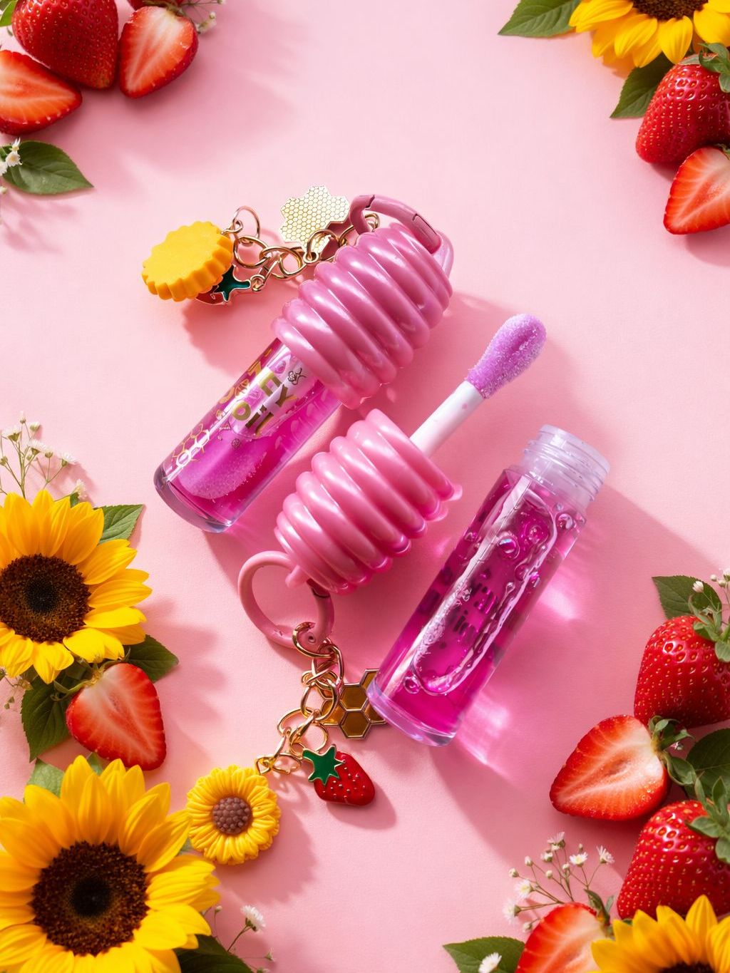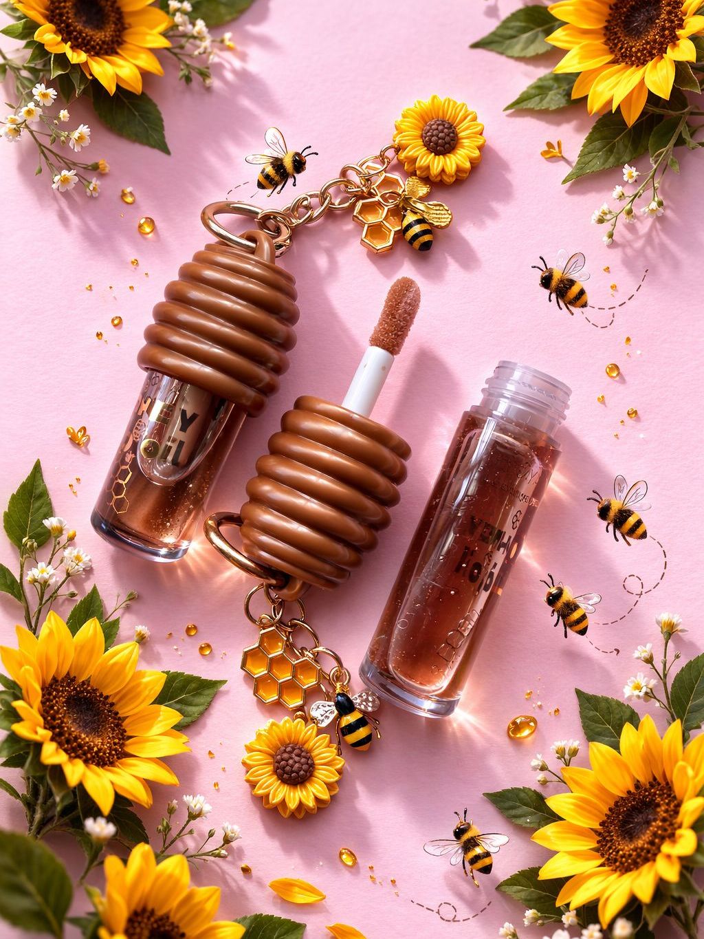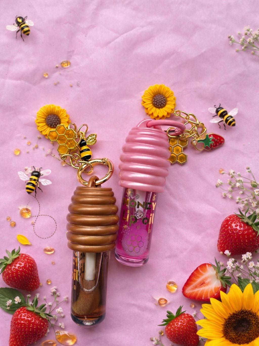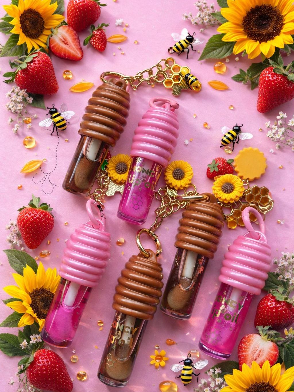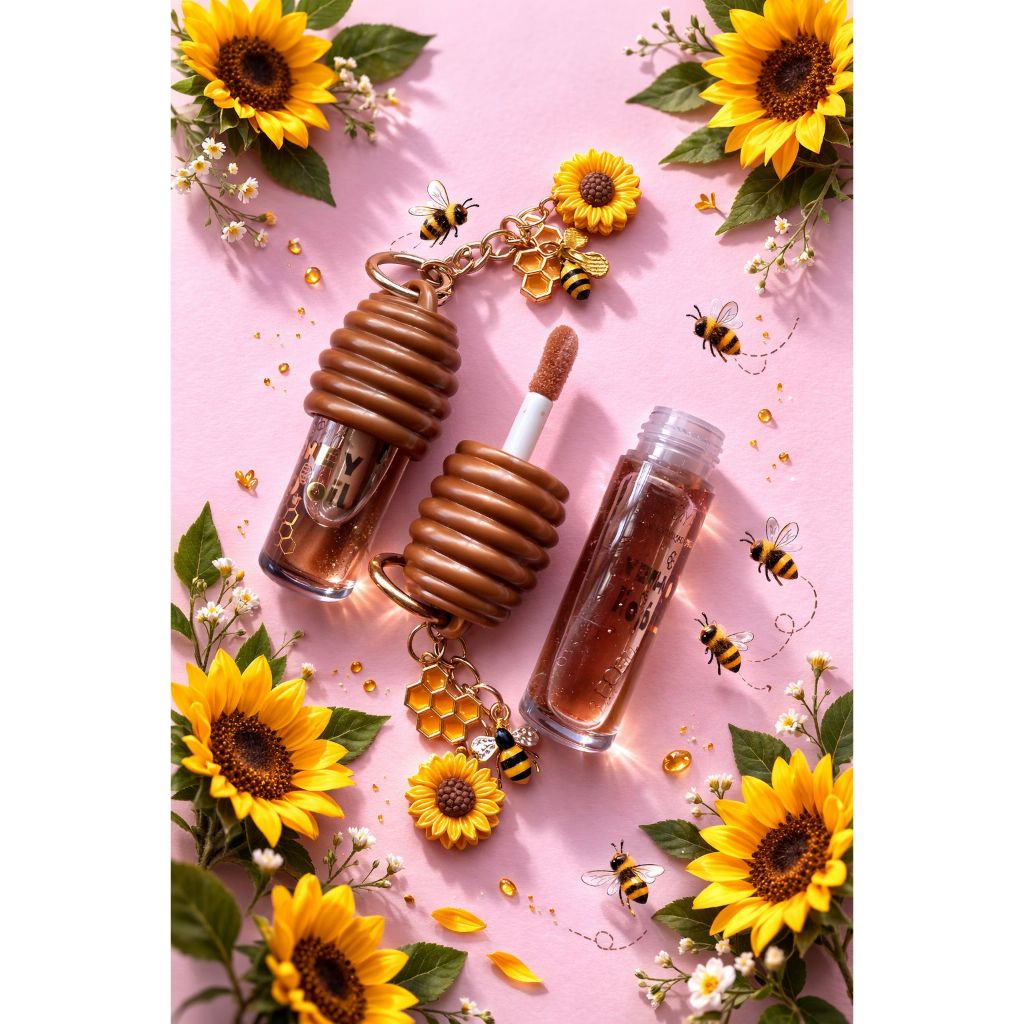 Lip Oil Honey Mel Miss Glam Gloss Hidratante com Chaveiro Abelha Brilho Natural