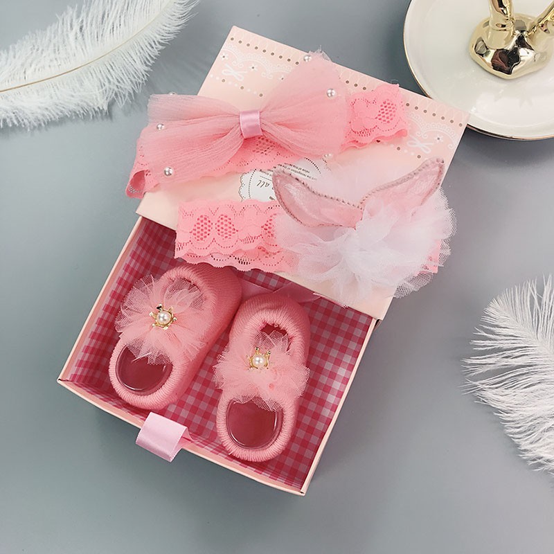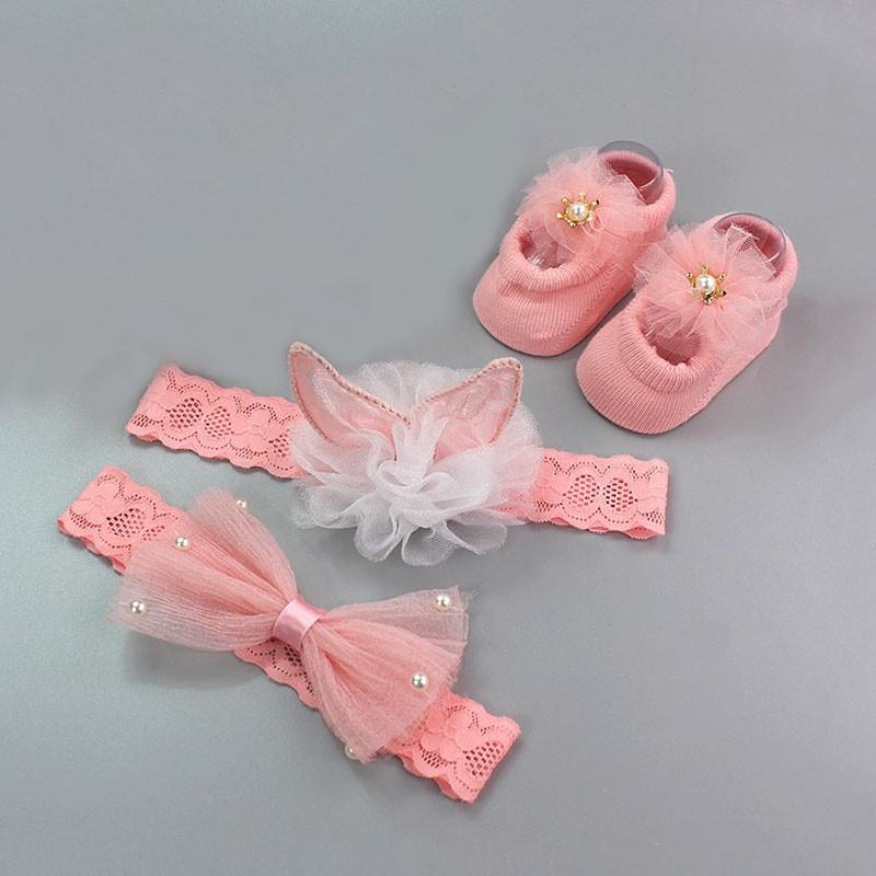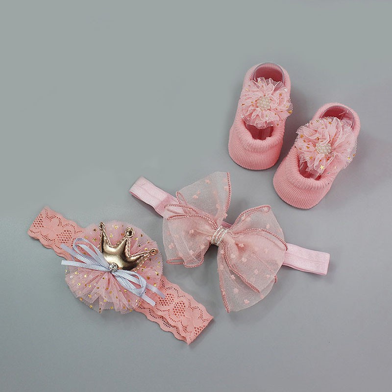 3 Pçs / Cjto Bebê Faixa De Cabeça + Meias Bonito Coroa Arcos Bebê Menina Headbands Acessórios Para O Cabelo