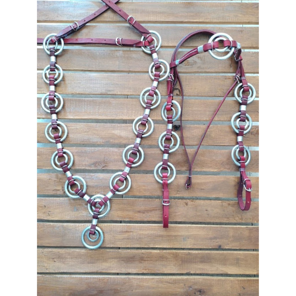 Traia Para Cavalo Cabeçada Peitoral Rédea Argola Dupla Luxo