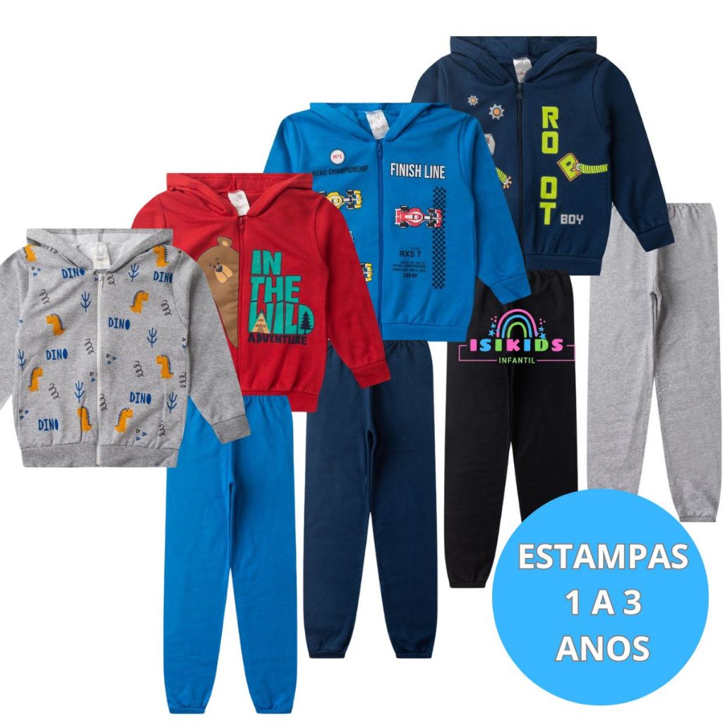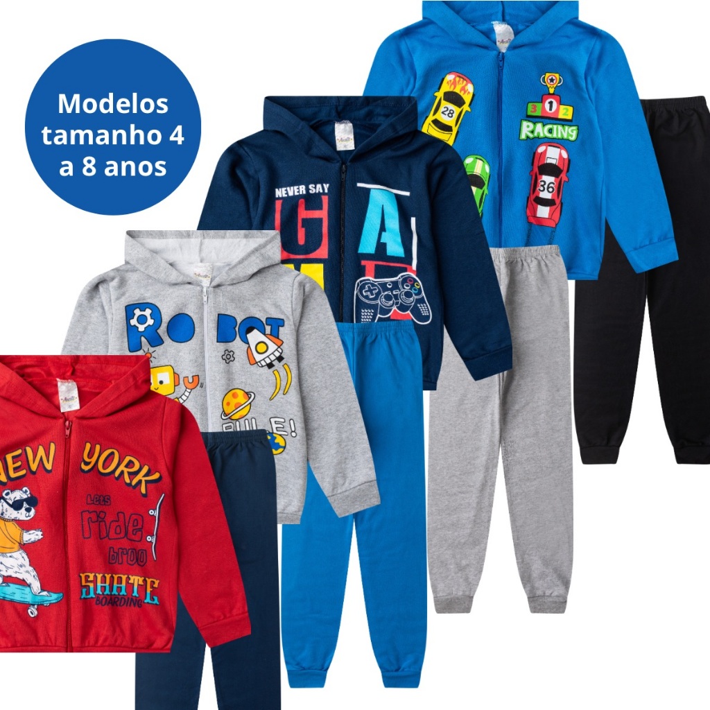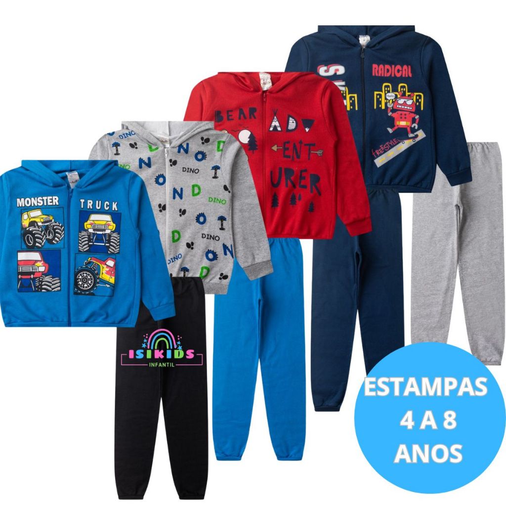 Kit Conjunto Moletom Menino Inverno 4 Jaquetas + 4 Calças com Punho