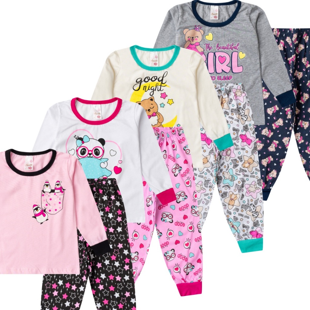 Kit 3 Pijama Infantil Menina Manga Longa Algodão