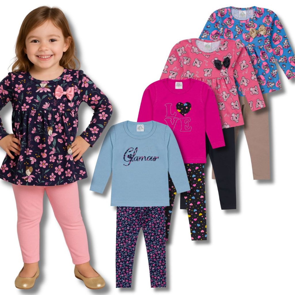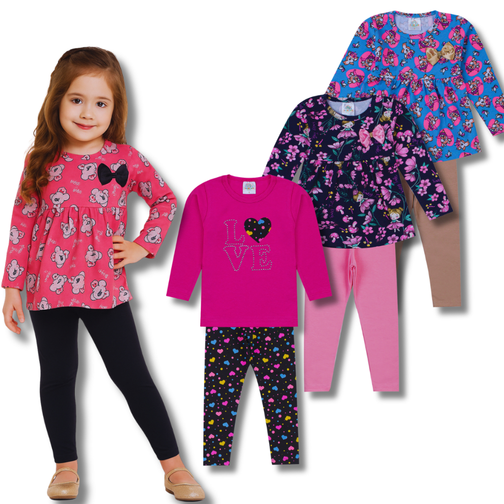 Kit Conjunto Infantil Menina Meia Estação 2 a 8 anos Qualidade Superior