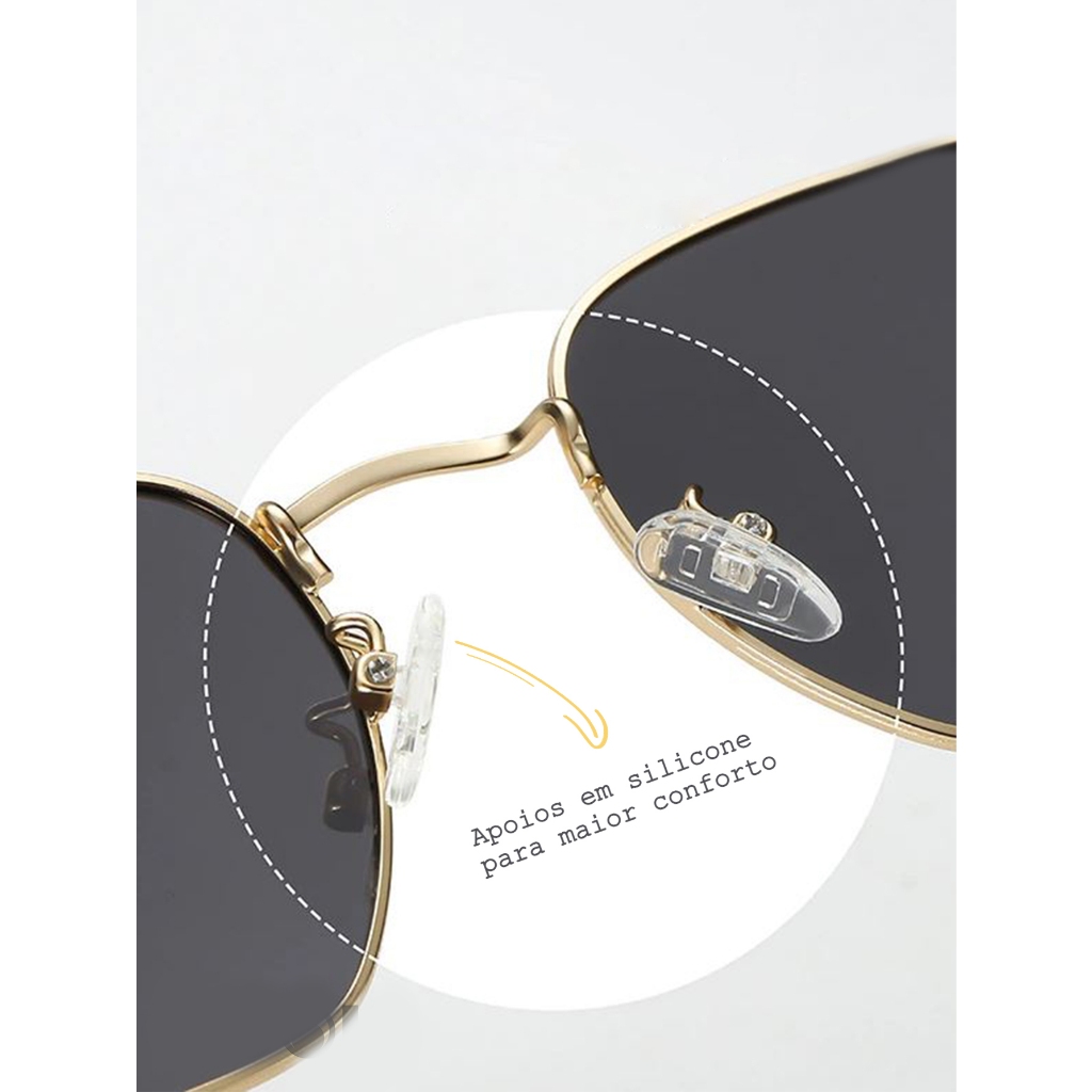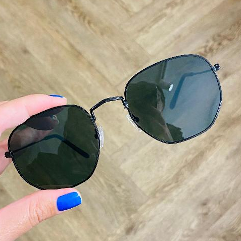 óculos de sol hexagonal masculino feminino lente com proteção uv400