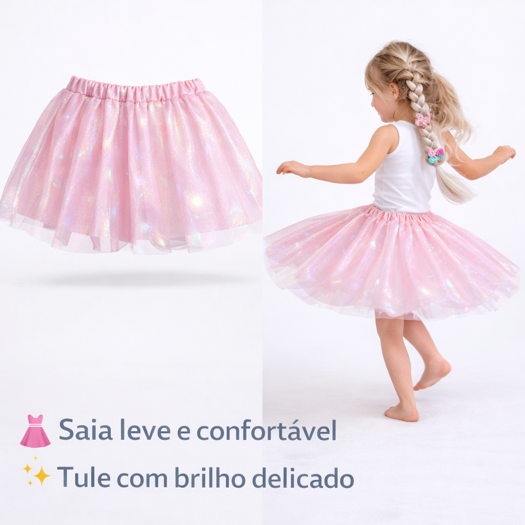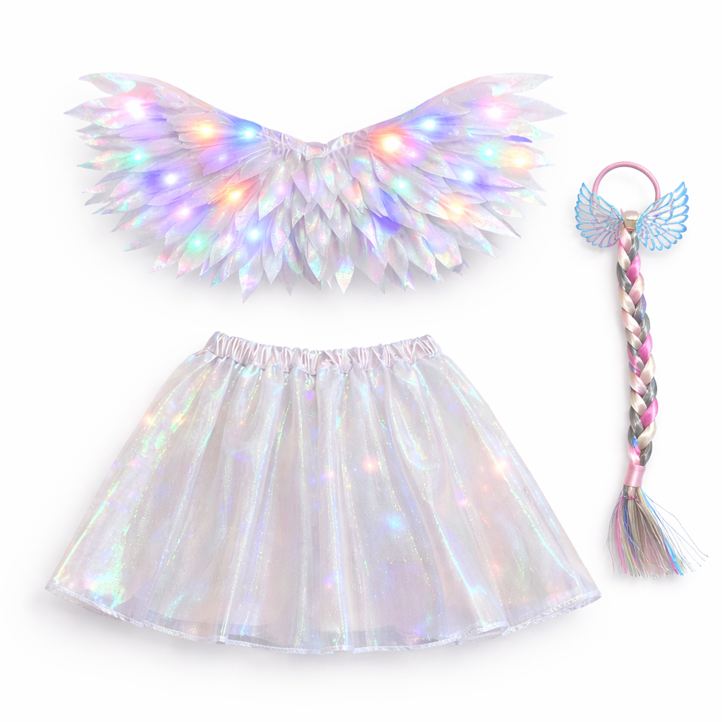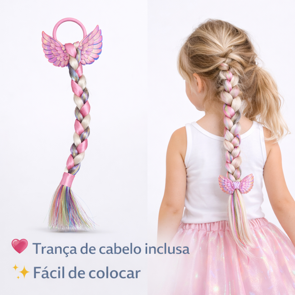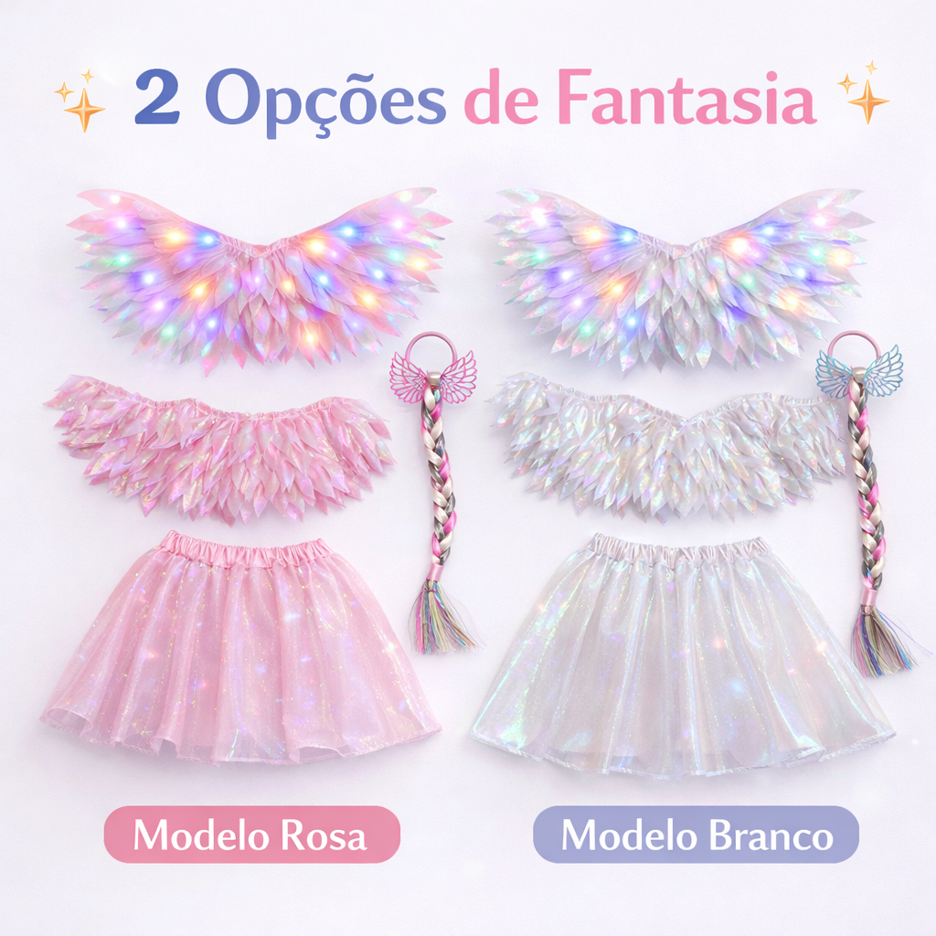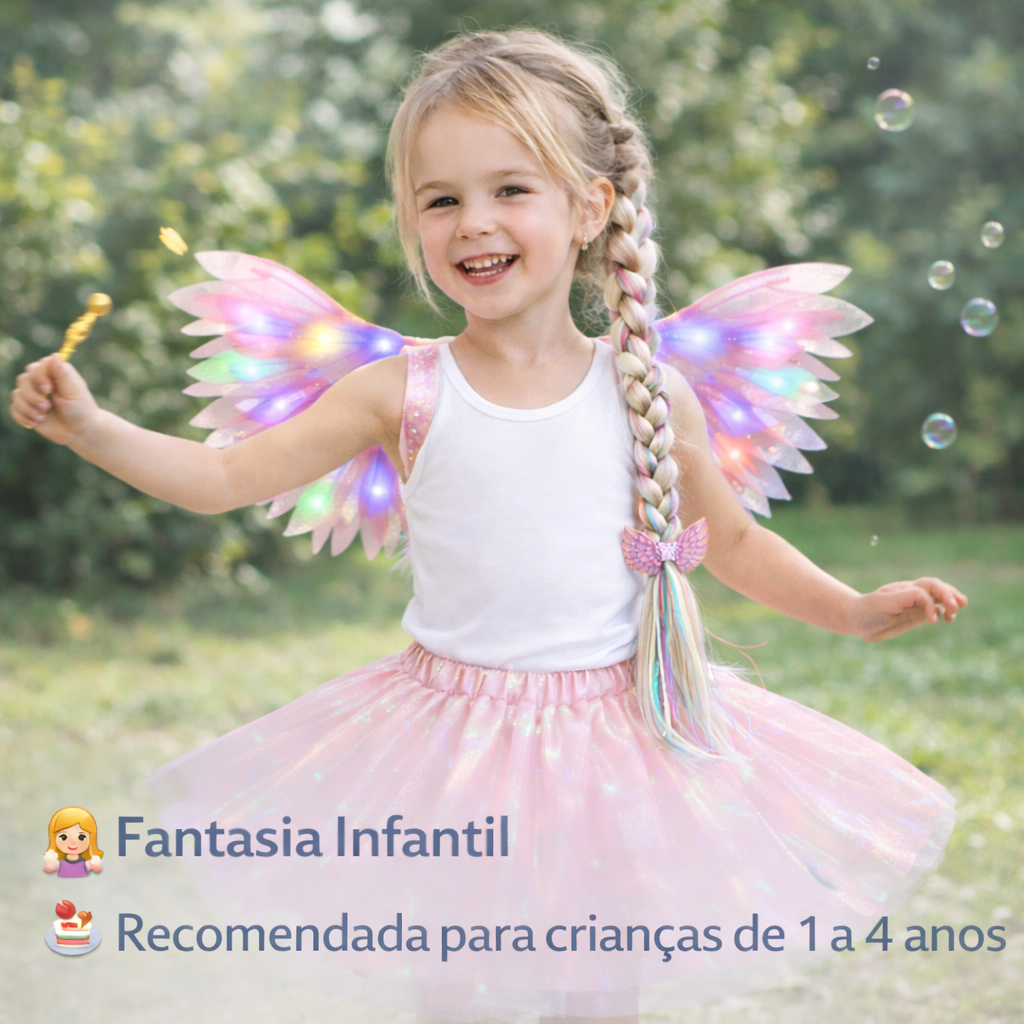 Fantasia Infantil Asa de Fada com LED + Saia Tule + Trança | Kit Completo Menina 1 a 4 Anos