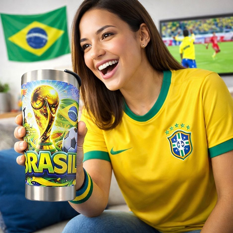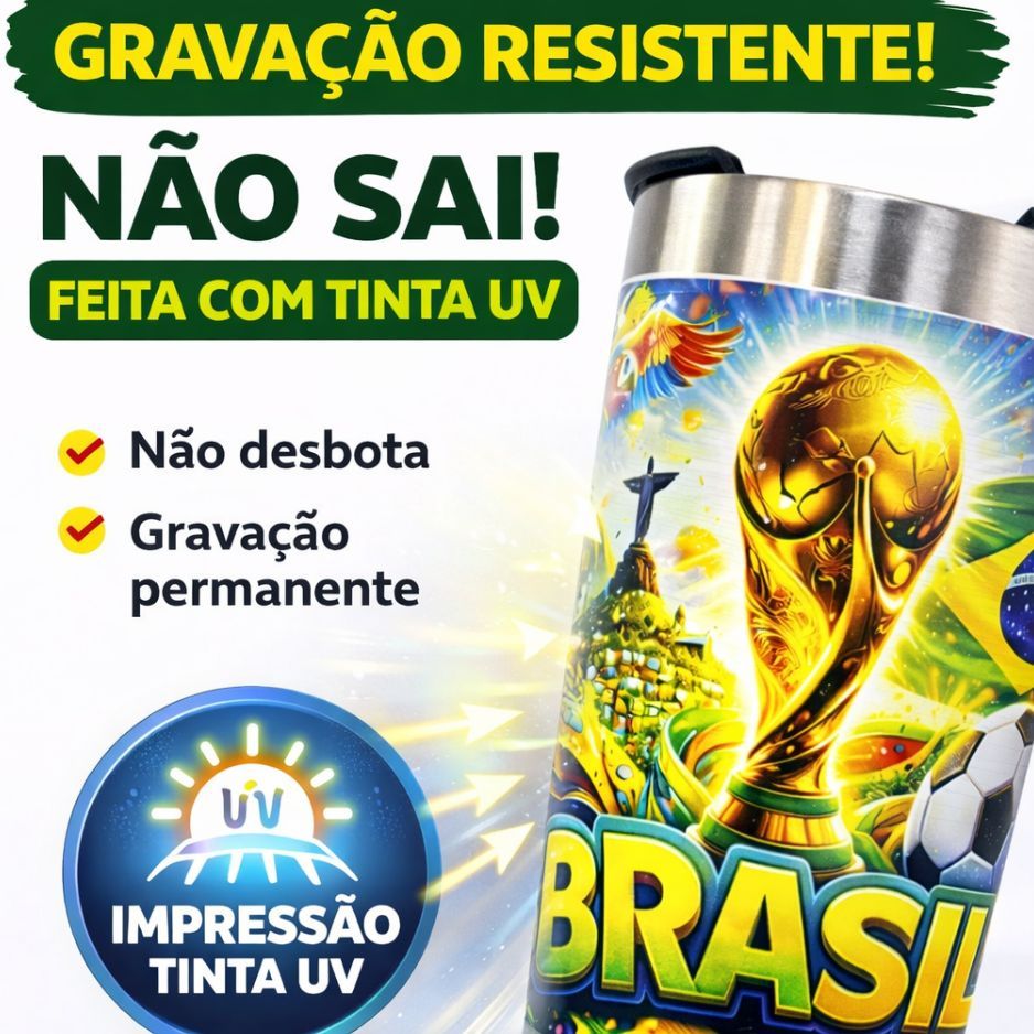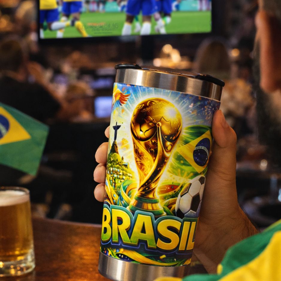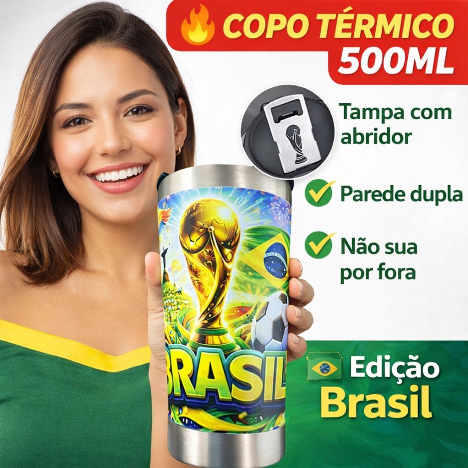 Copo Térmico Brasil 500ml Inox Tampa com Abridor Futebol Copa Cerveja Gelada Bebida Térmica Torcedor