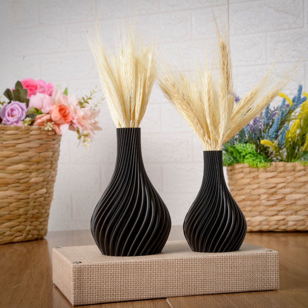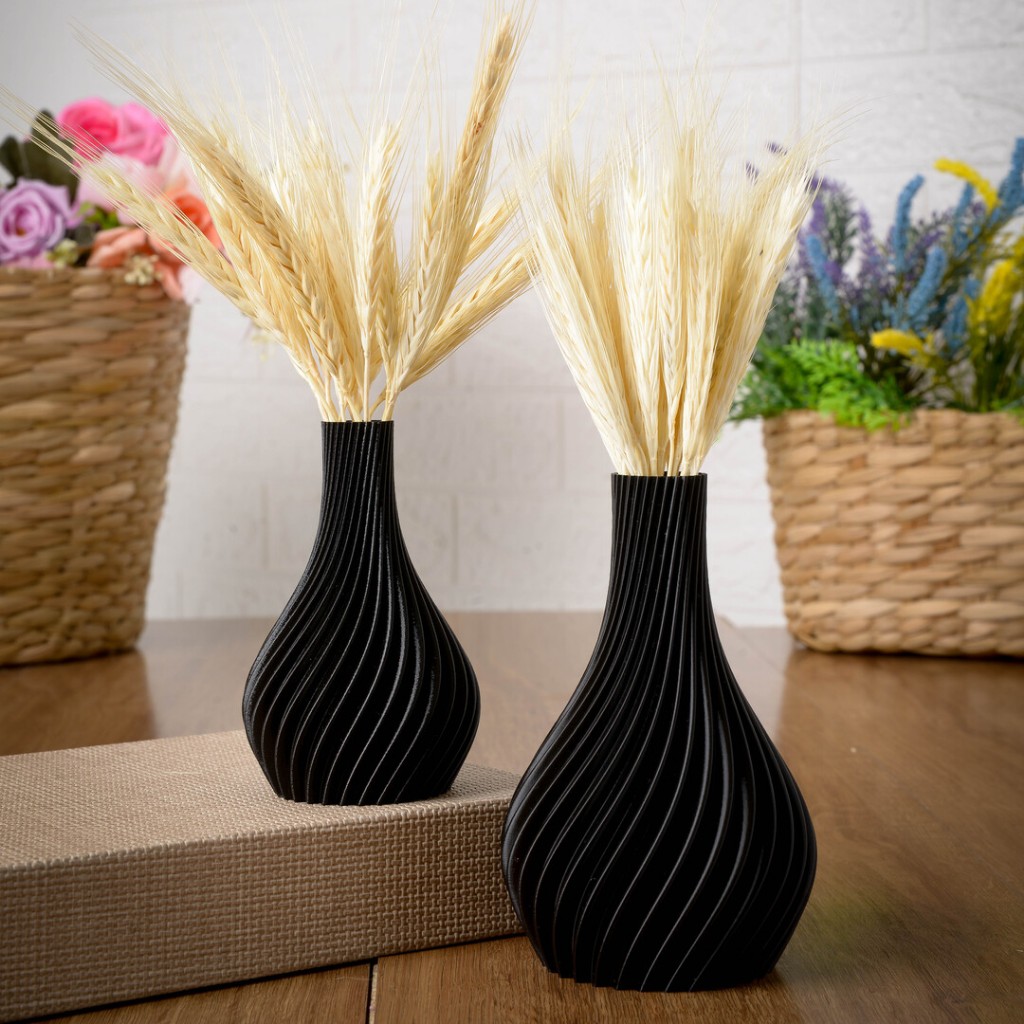Kit 2 Vasos Decorativos Enfeite de Plástico para Sala, Rack, Banheiro, Casa e Escritório | Decoração Moderna Trigo seco