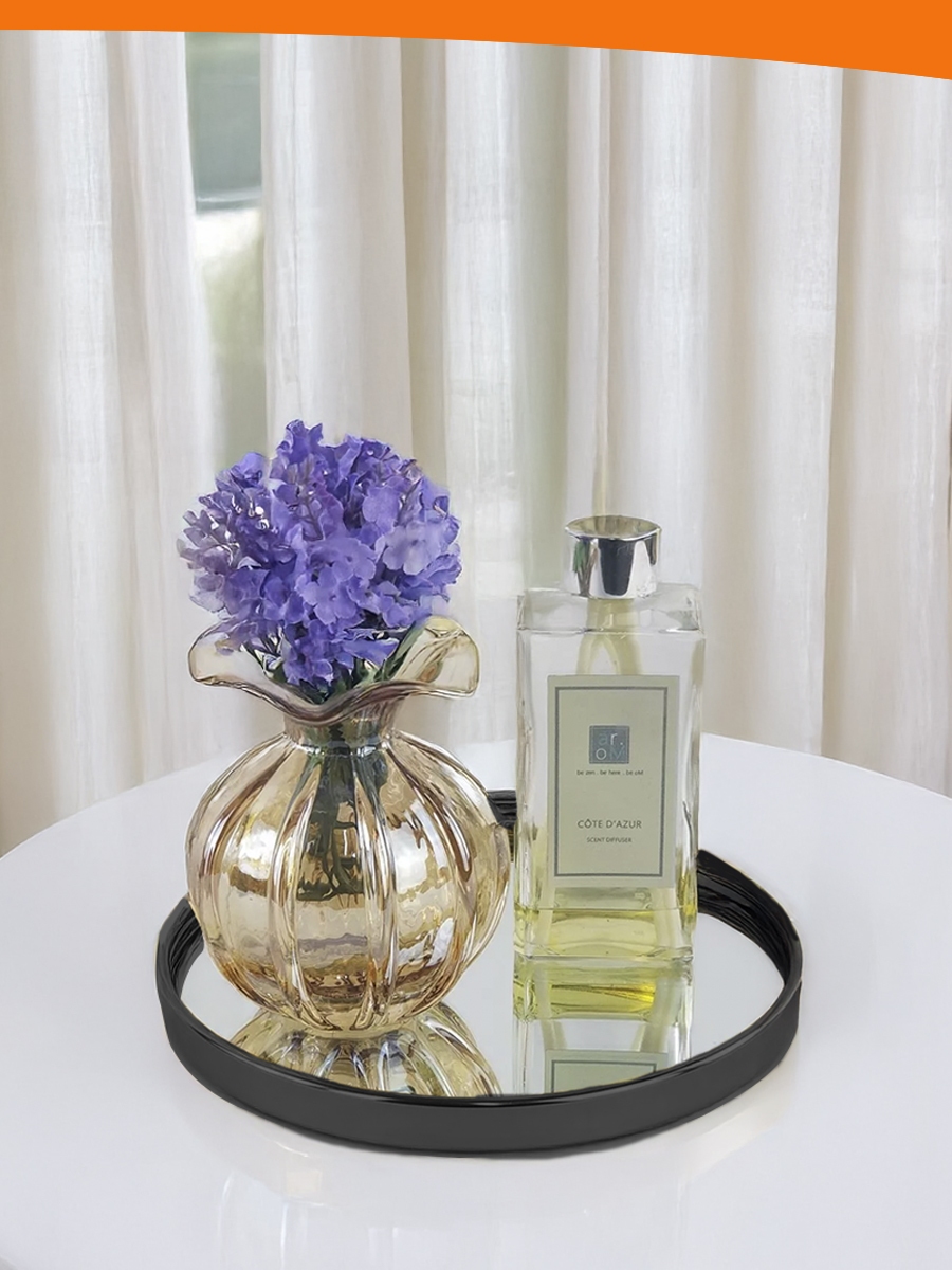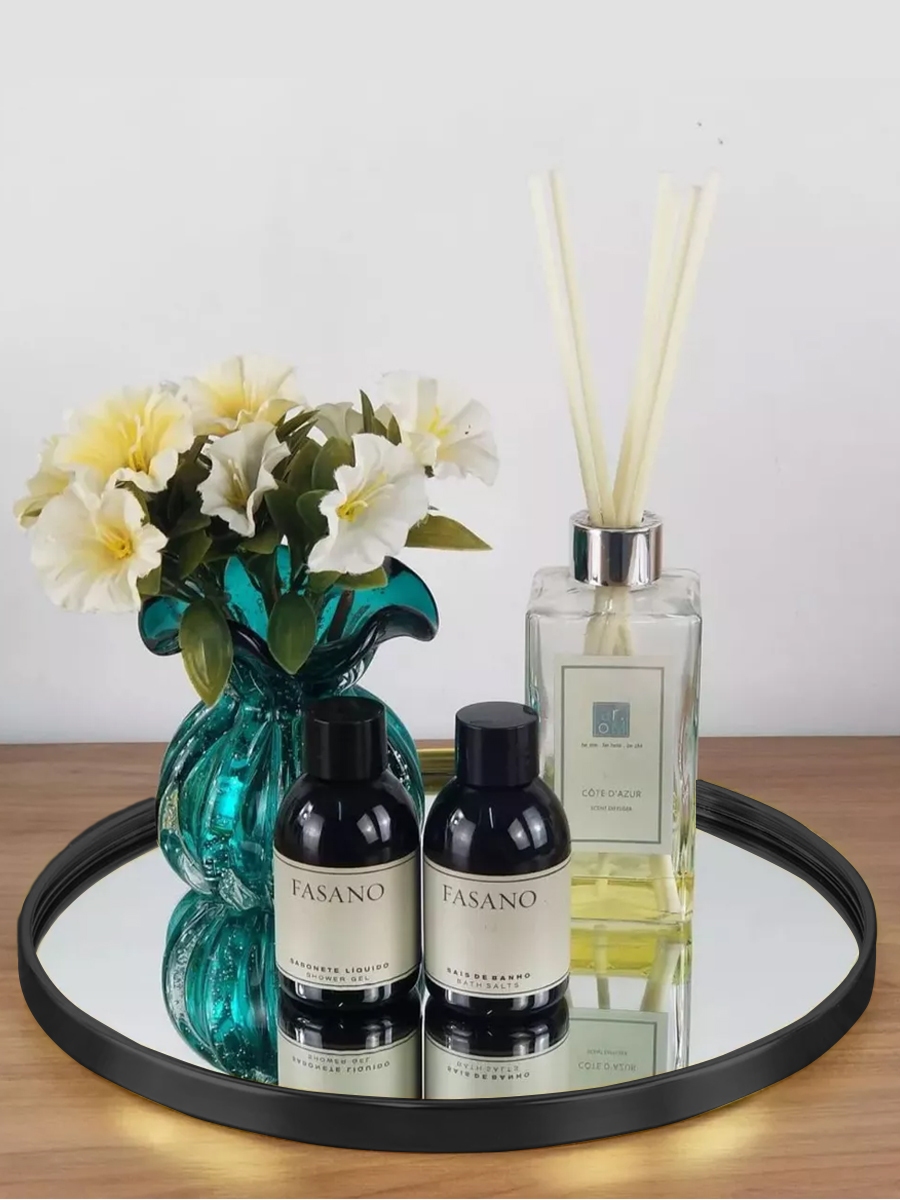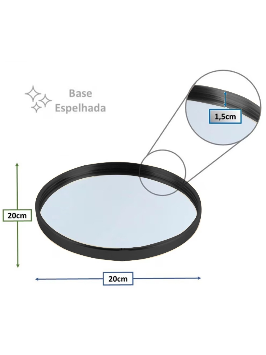 Bandeja Decorativa Espelhada Redonda De Luxo 20CM Preto