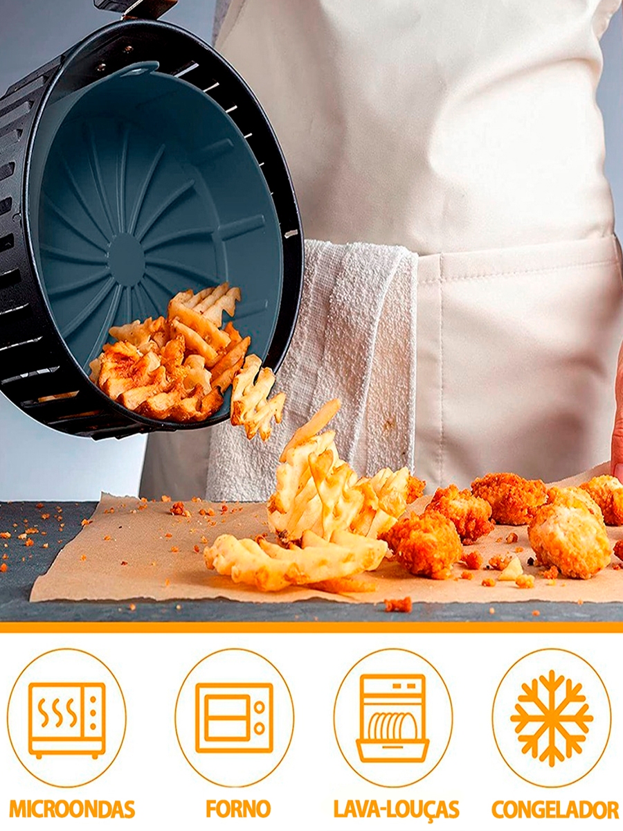 Forma De Silicone Redonda Para Fritadeira Air Fryer Forno Microondas 16CM