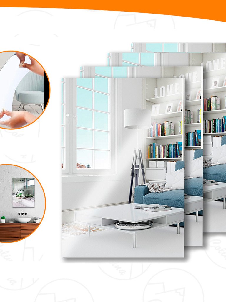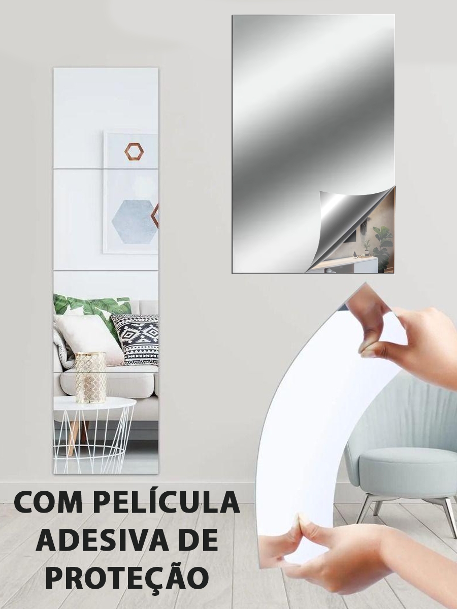 Espelhos Auto Adesivo Acrílico Decorativo 20x30 Retangulares Ovais Arredondados