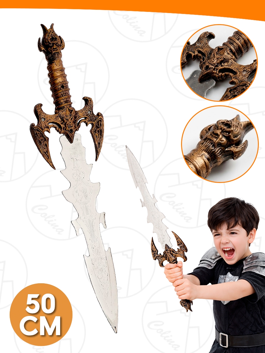 Espada Infantil Cavaleiro Medieval Guerreiro 50cm Cabo Dragão Brinquedo Fantasia Carnaval