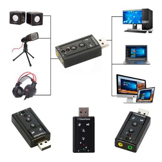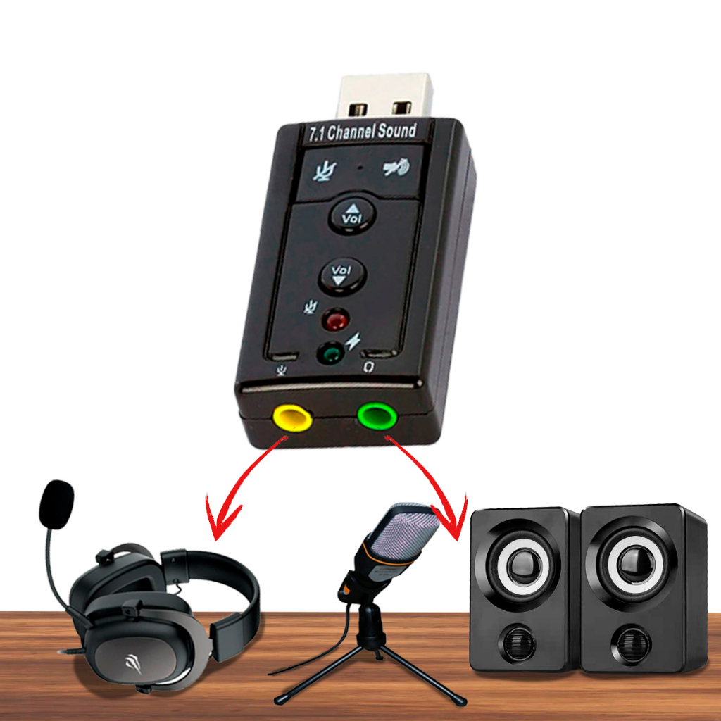Placa de som Adaptador USB 2.0 Áudio Fone Externo 7.1-Canais