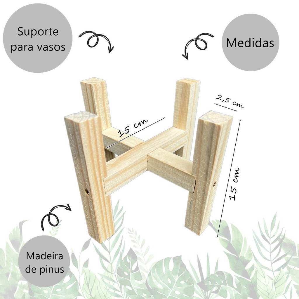Suporte Vasos De Plantas 15x15cm Interno Madeira Pinus Tripé