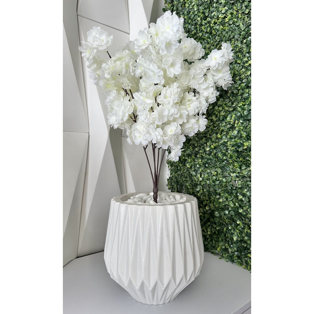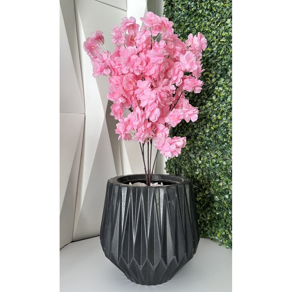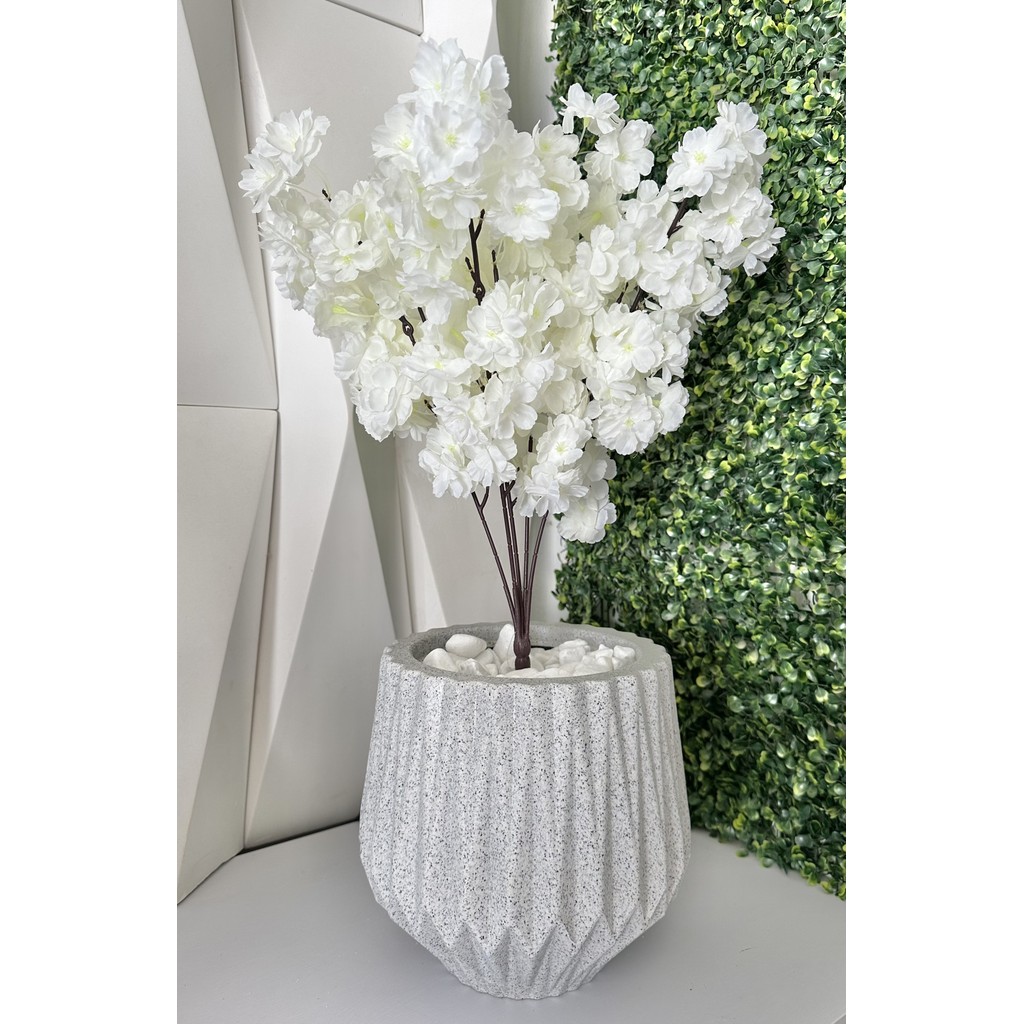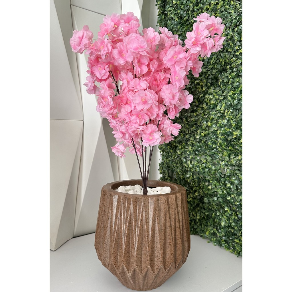 Flor Cerejeira Pessegueiro Artificial + Vaso Origami Pedra