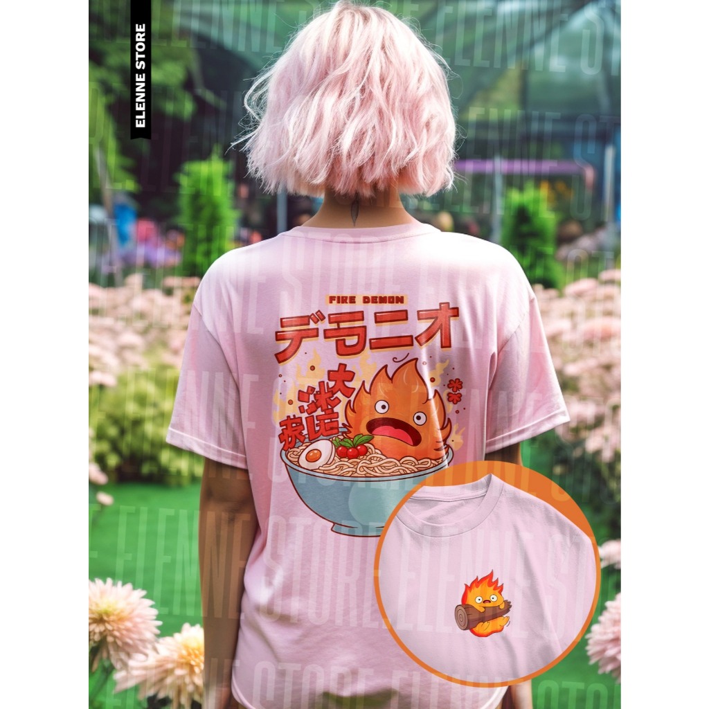 Camiseta Calcifer 100% Algodão Animação O Castelo Animado Blusa Unissex Estampa Dupla Studio Ghibli