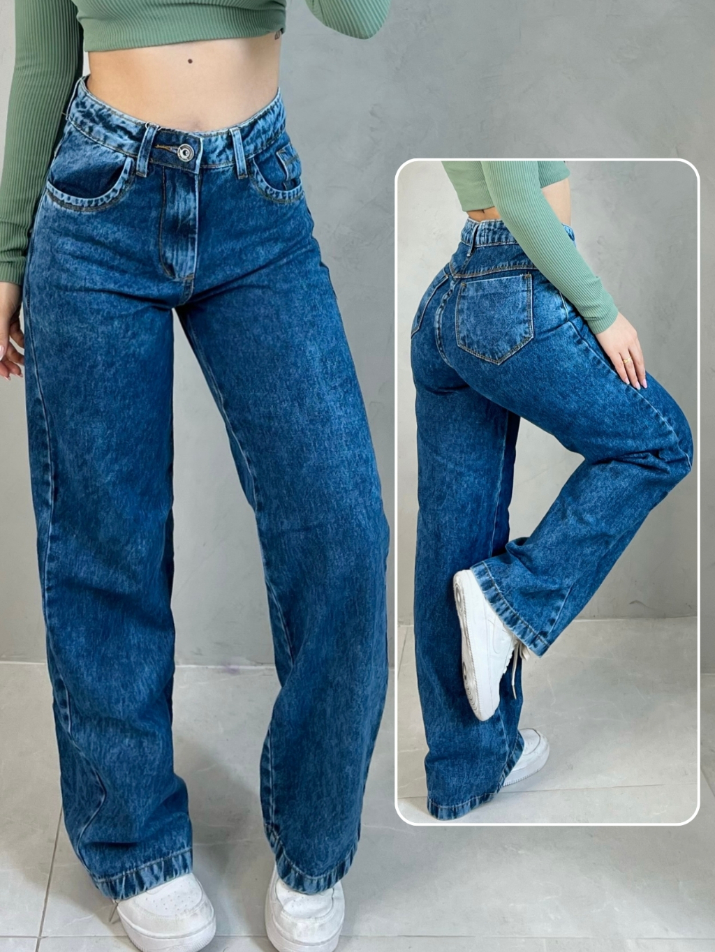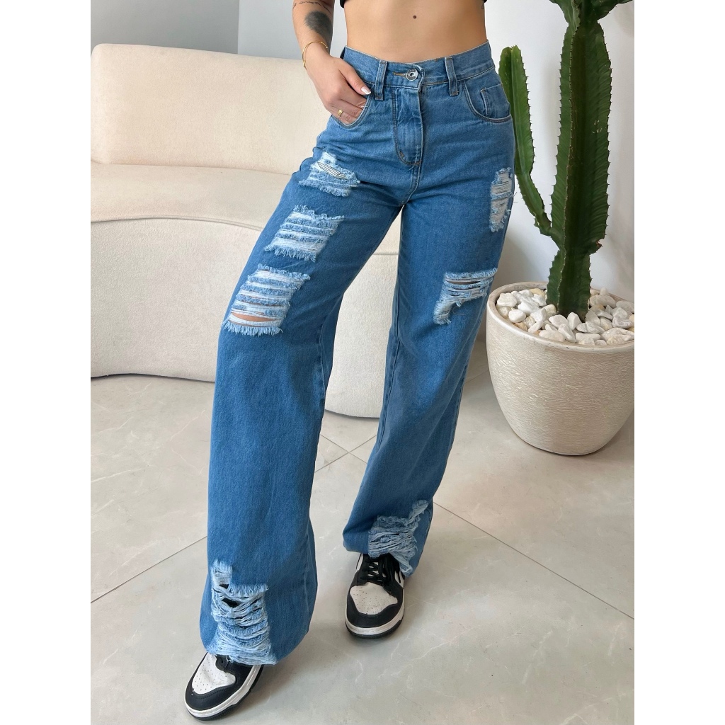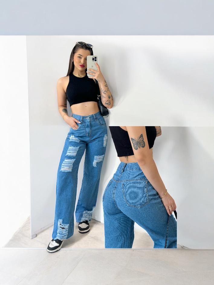 Calça Jeans Feminina Wide Leg pantalona Cintura Alta 100% Algodão