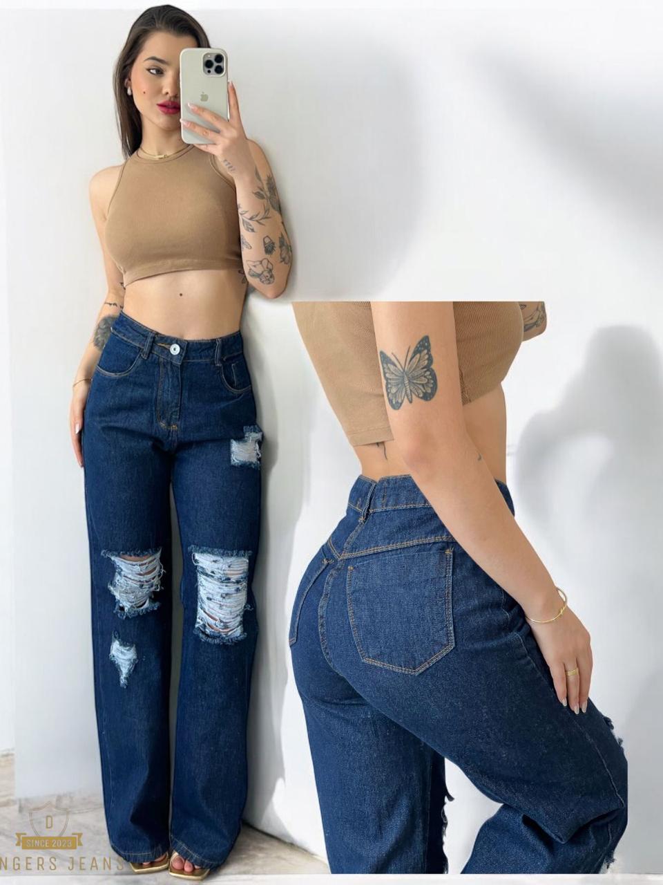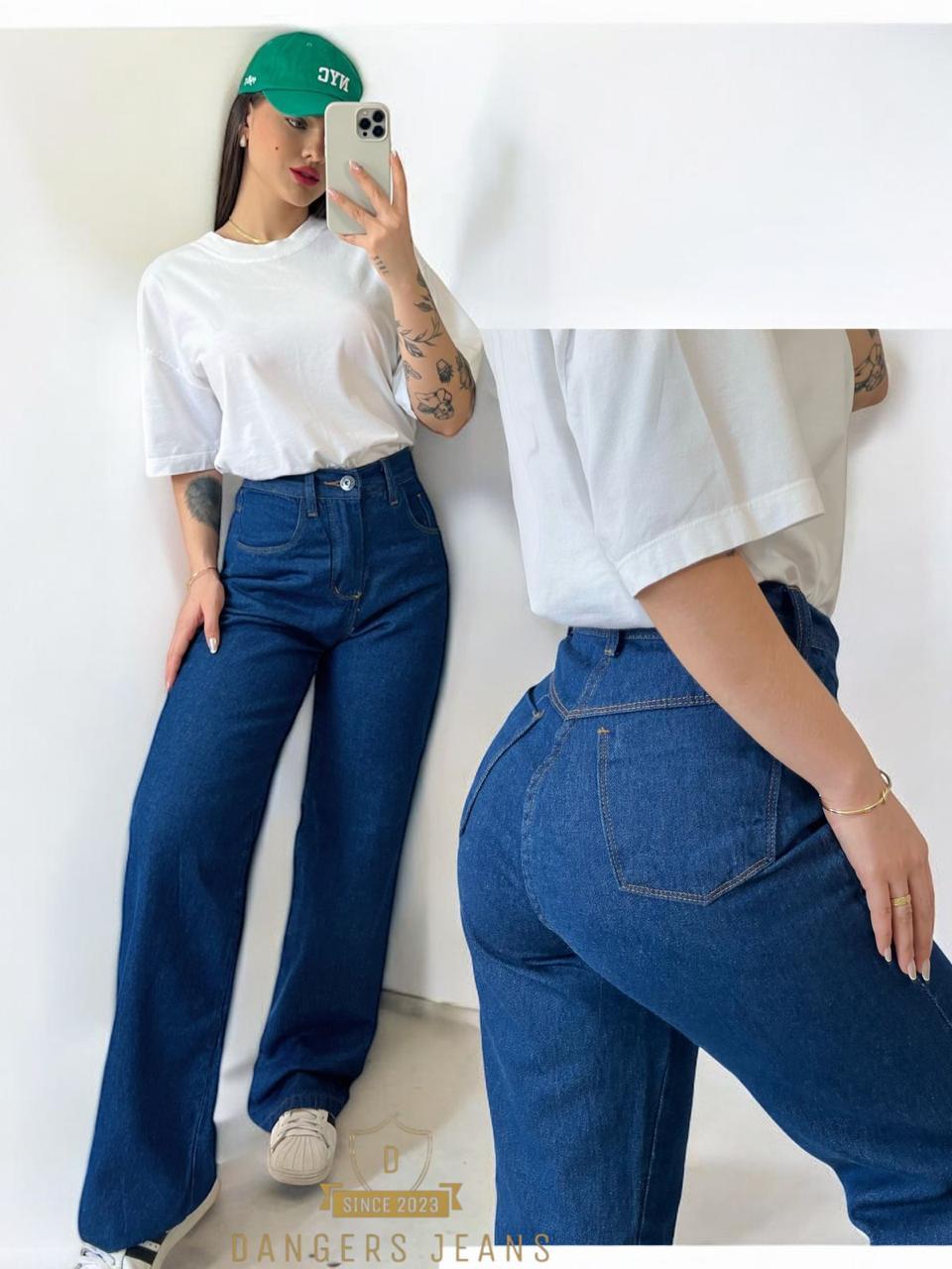 Calça Jeans Feminina Wide Leg pantalona Cintura Alta
