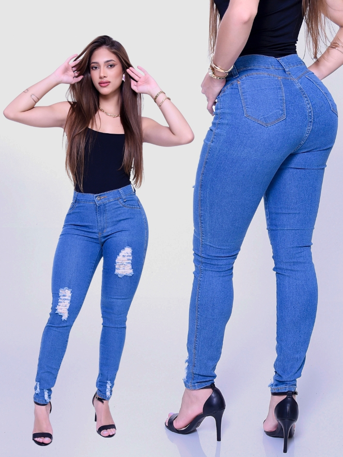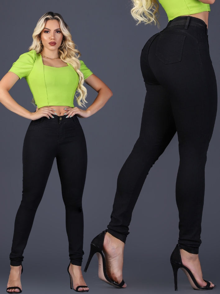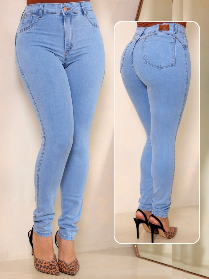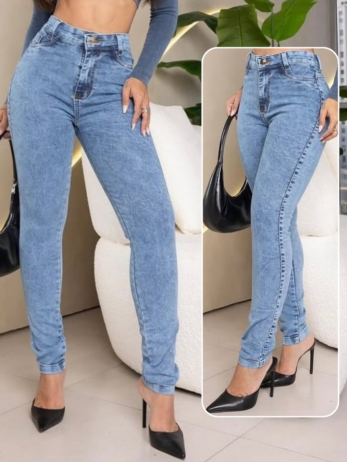 Calça Feminina Jeans Skinny Marmorizada Cinyura Alta Com Lycra Levante Bumbum Lançamento