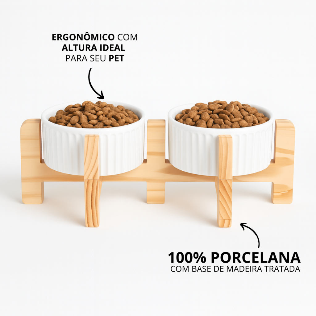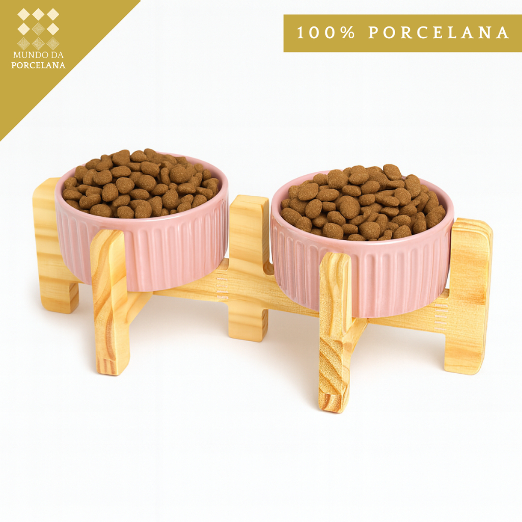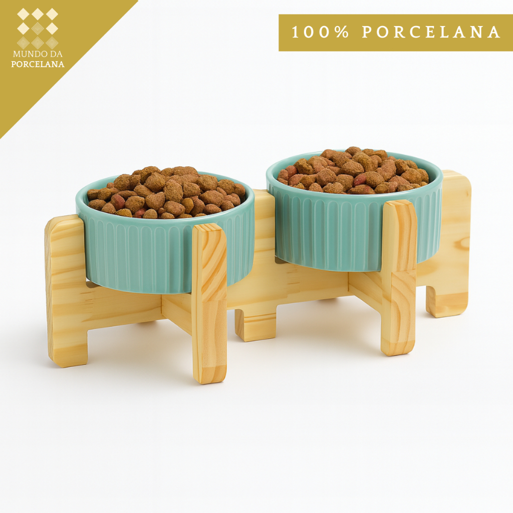 Comedouro Bebedouro Pet Elevado Duplo Pote Para Ração e Água Porcelana 320ml