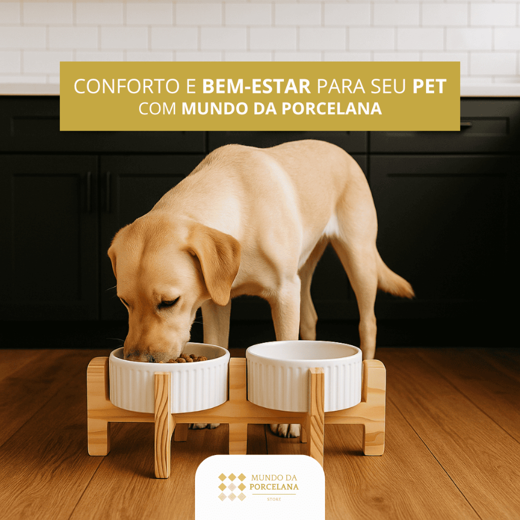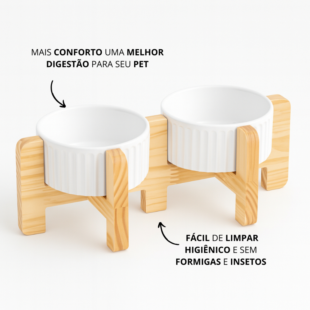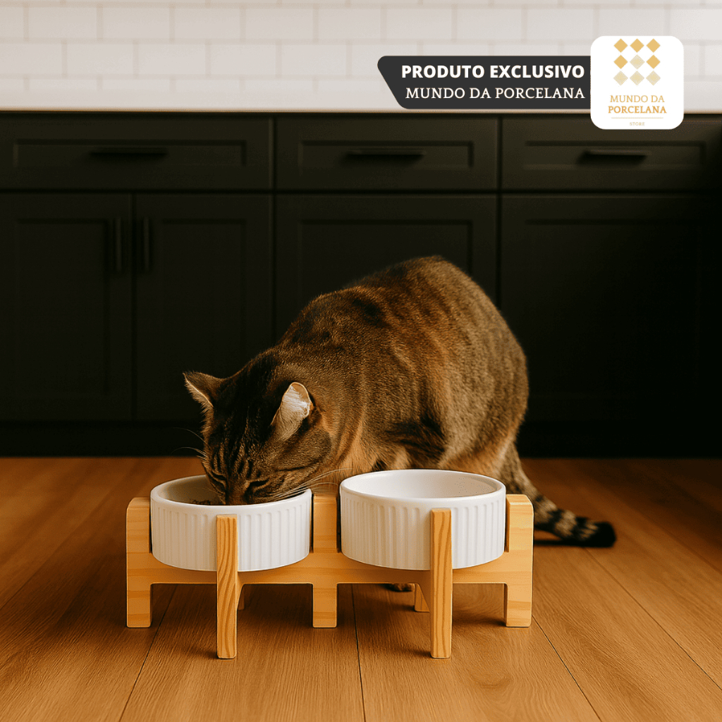Comedouro Bebedouro Pet Elevado Duplo Pote Para Ração e Água Porcelana 320ml