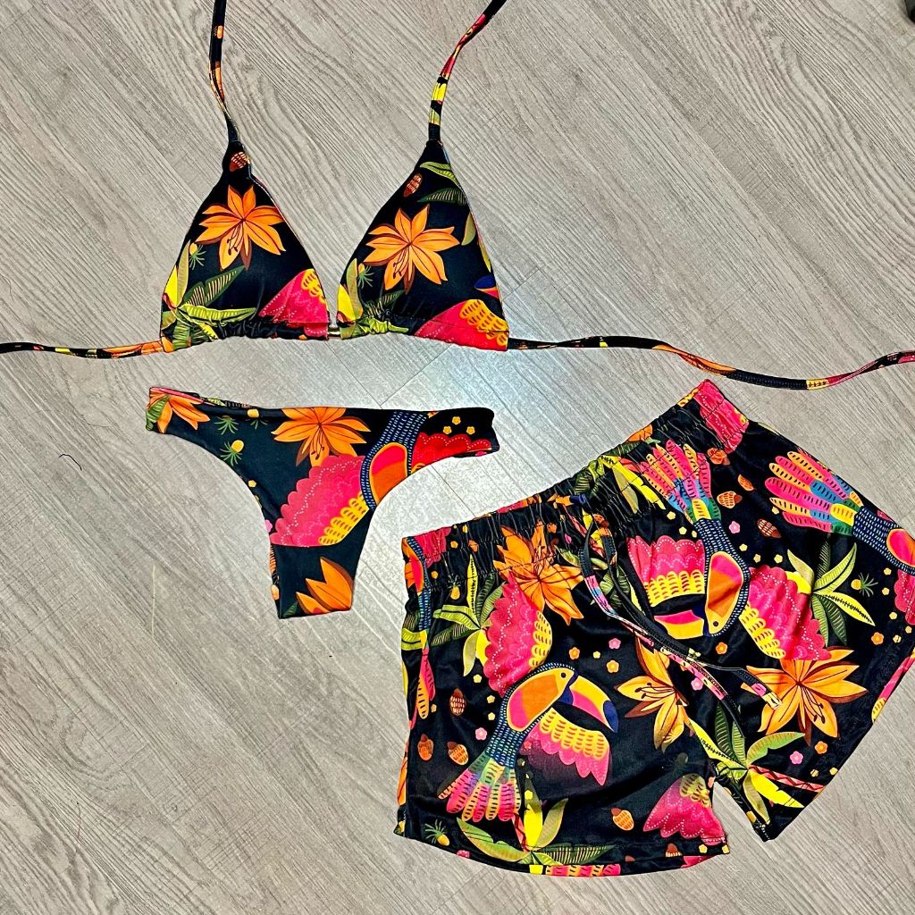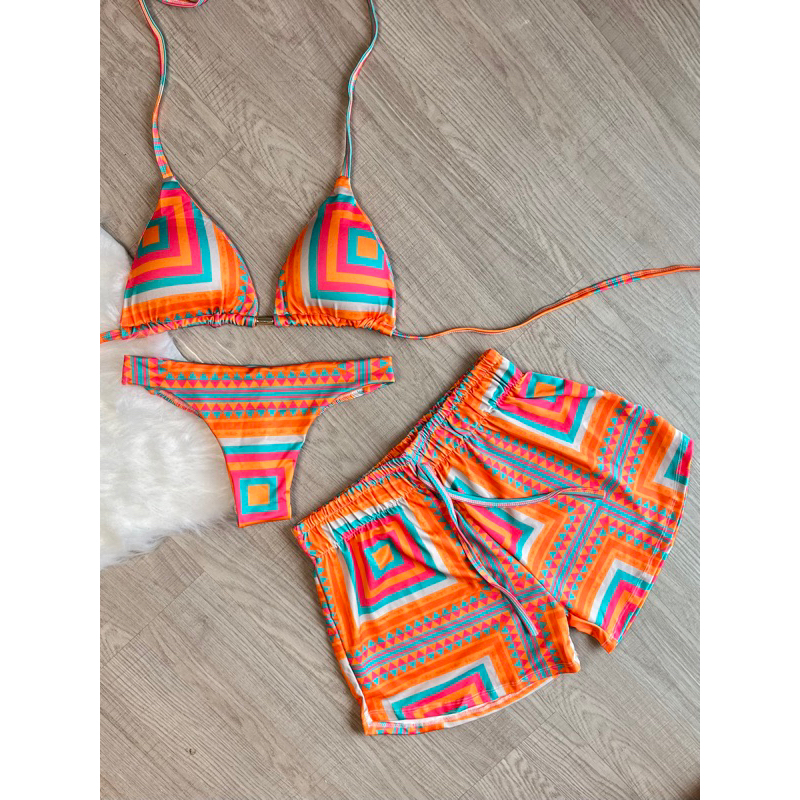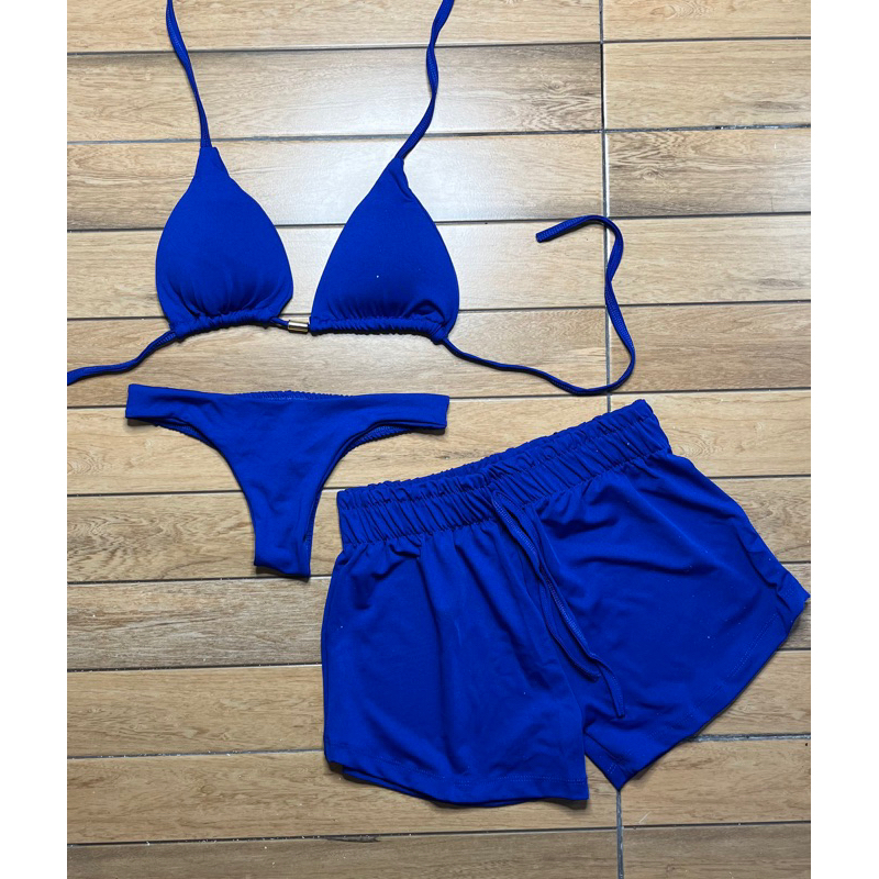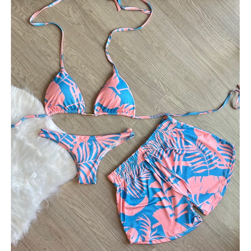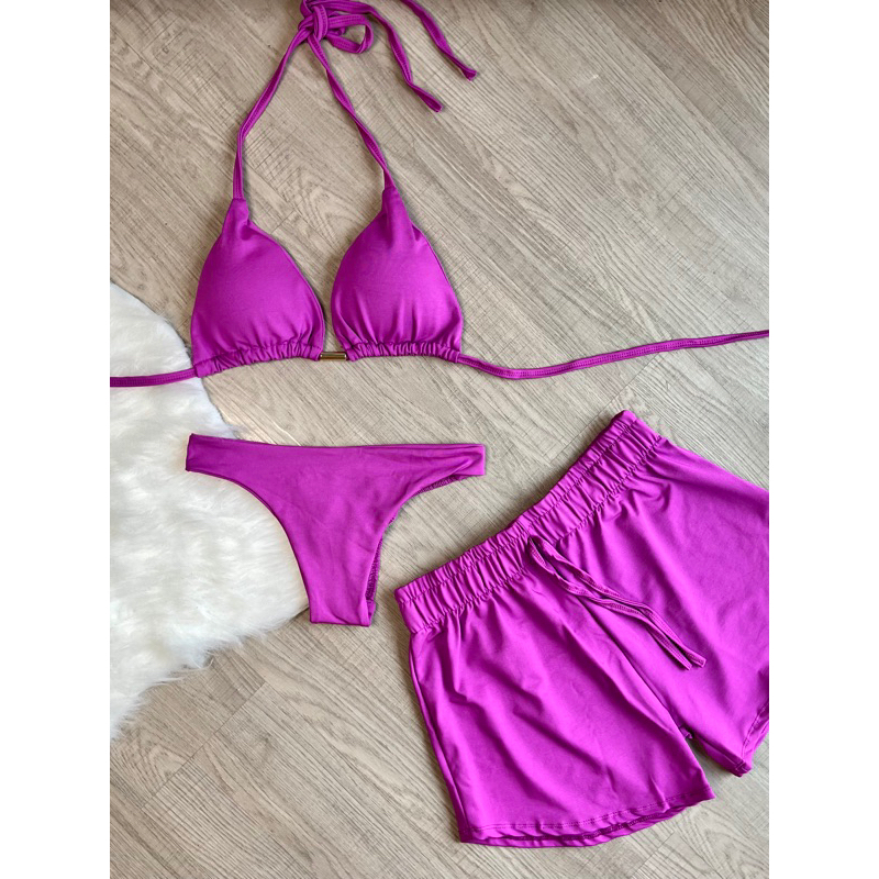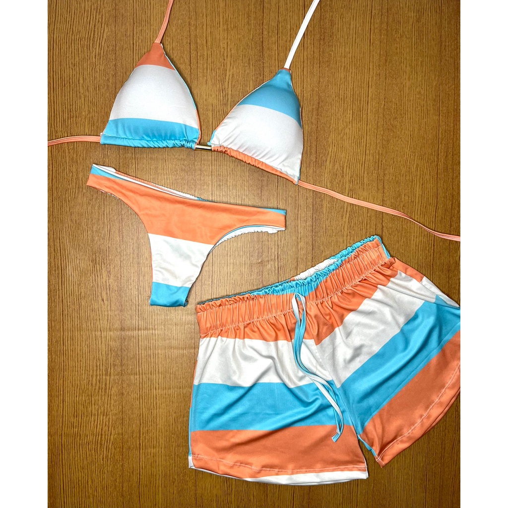 kit biquini com shorts 3 peças triquini conjunto 3 peças P M G GG moda praia