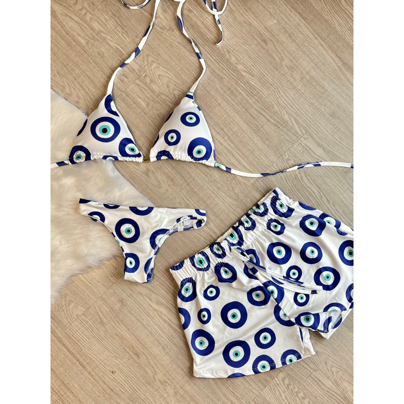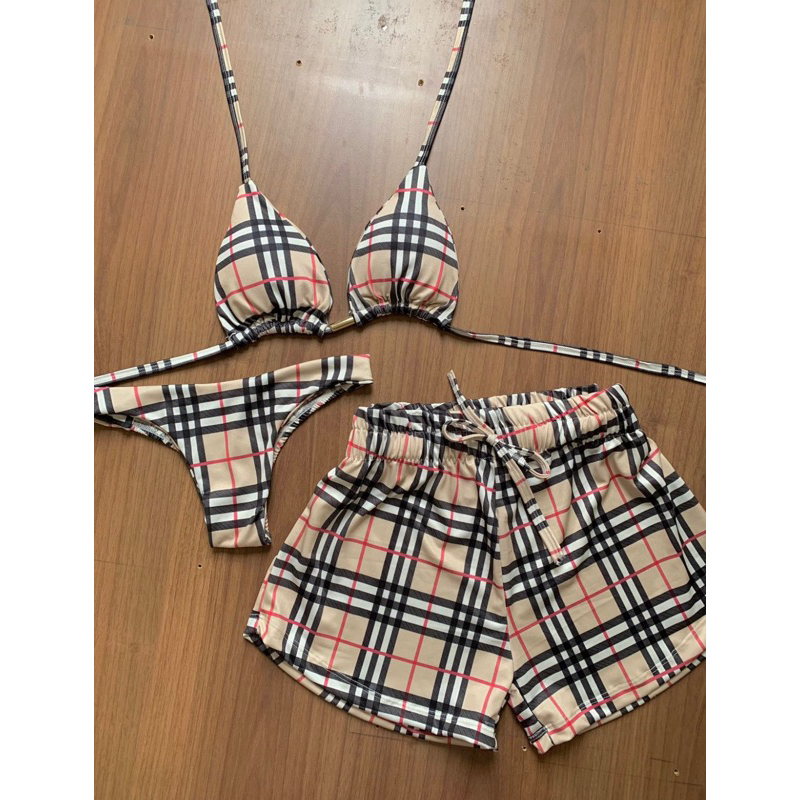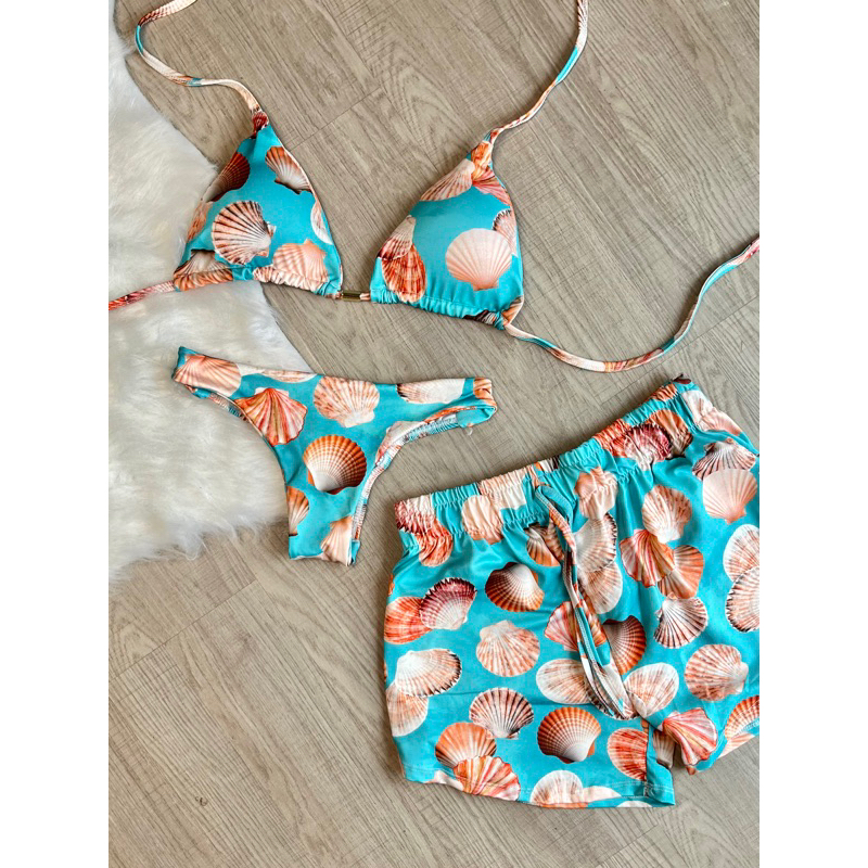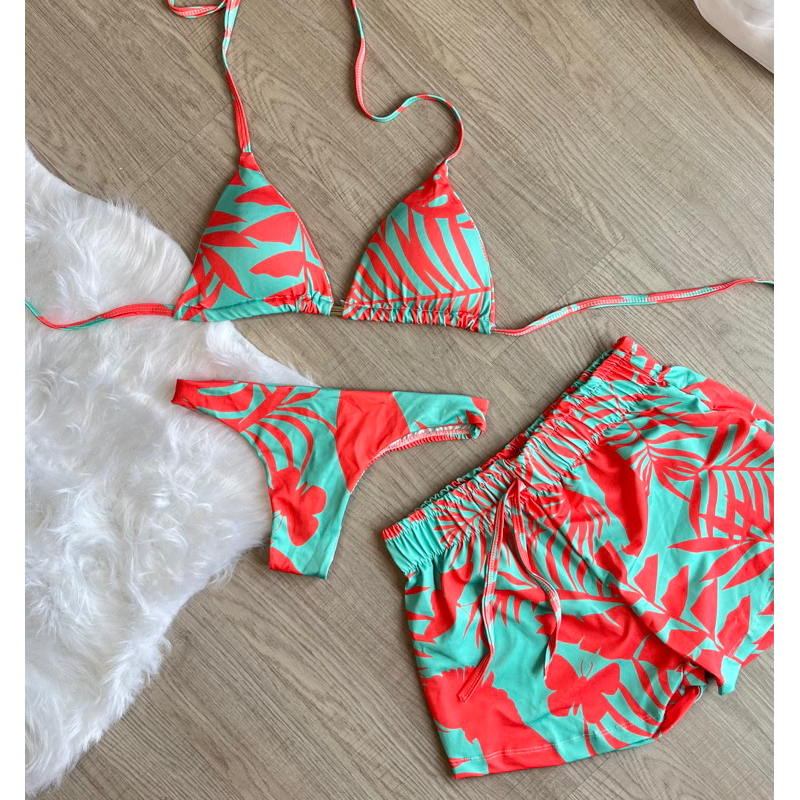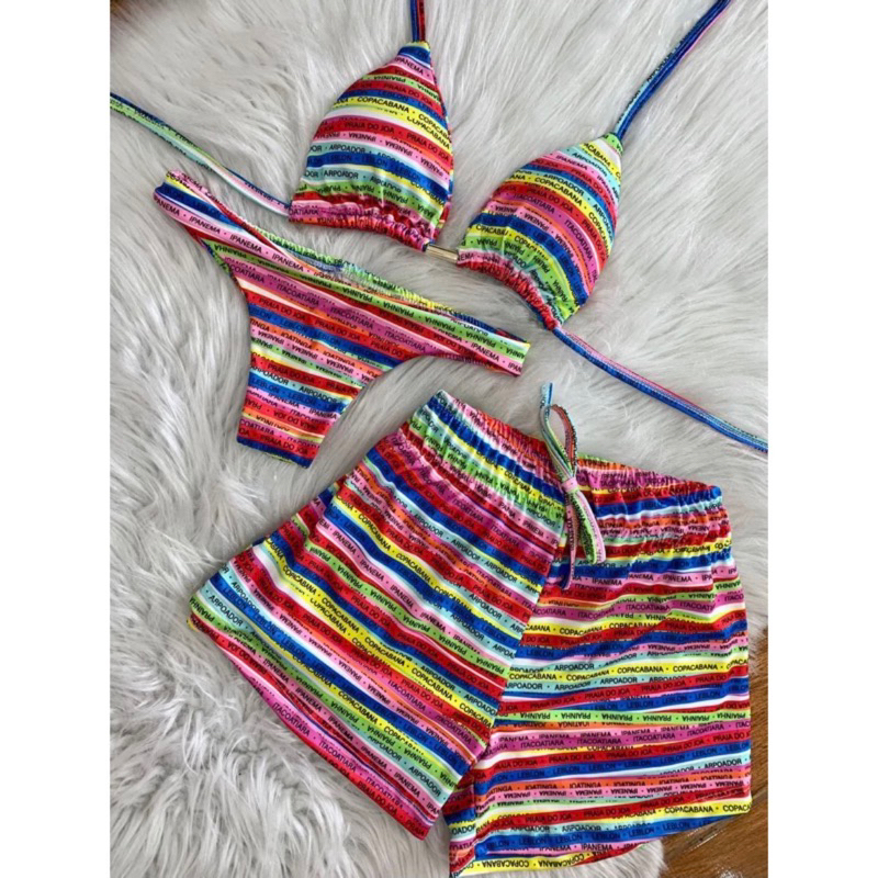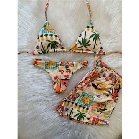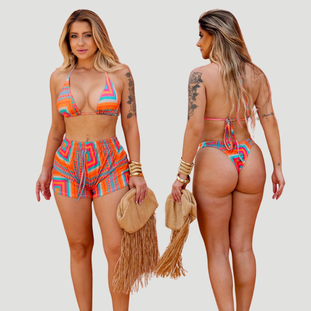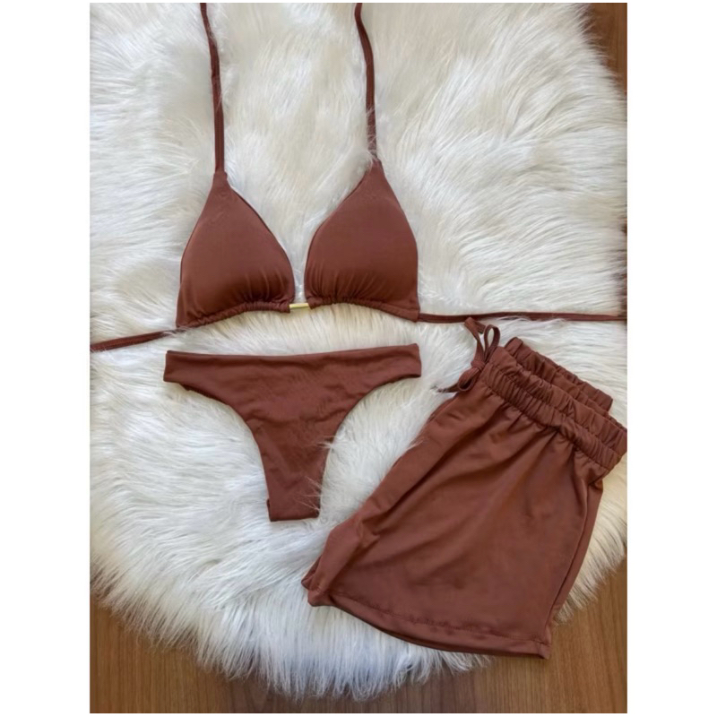 kit biquini com shorts 3 peças triquini conjunto 3 peças P M G GG moda praia