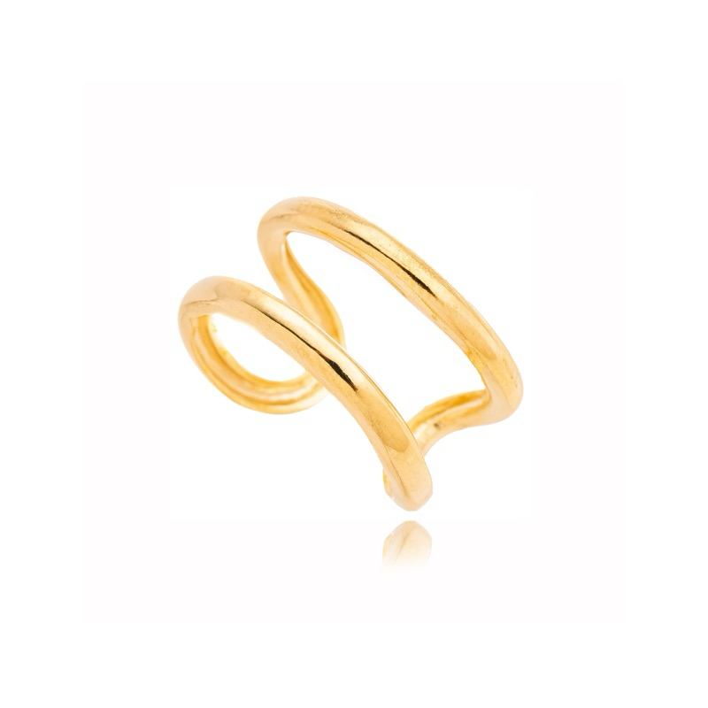Anel Duplo Liso Regulável Feminino Ouro 18k Ou Prata 925
