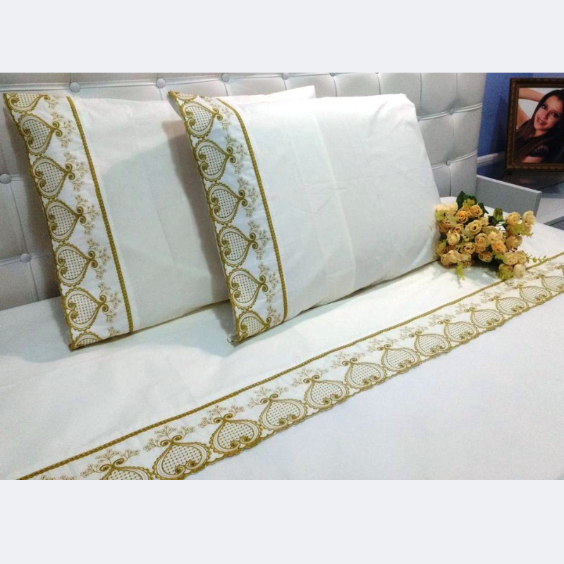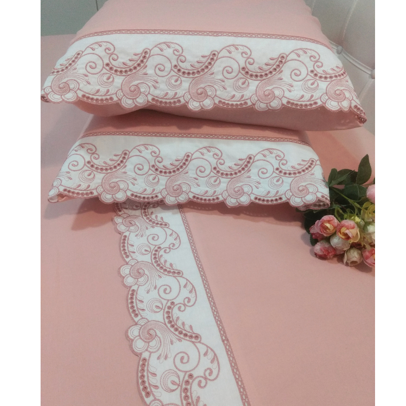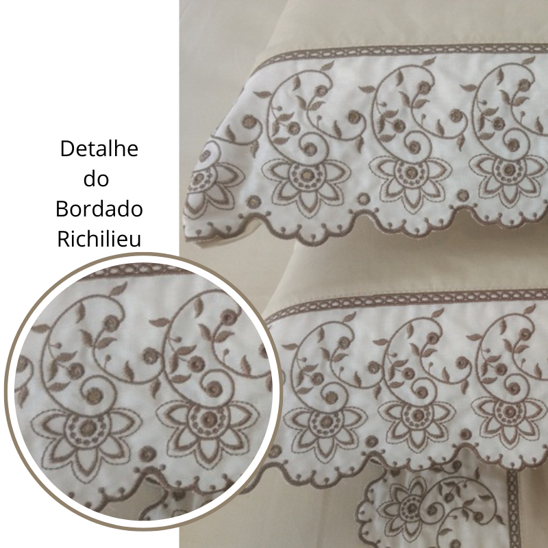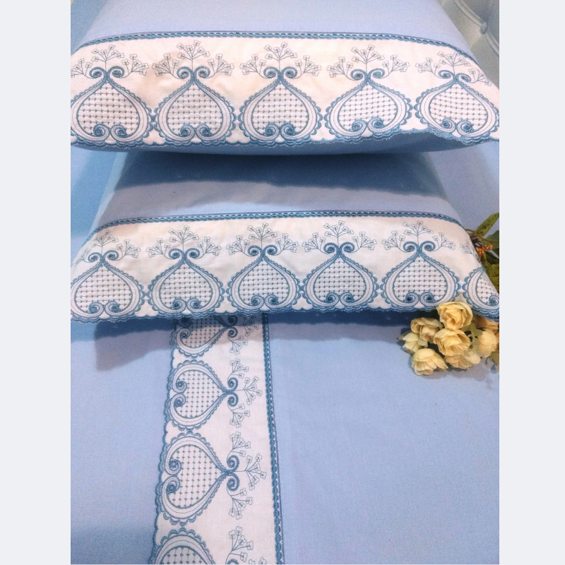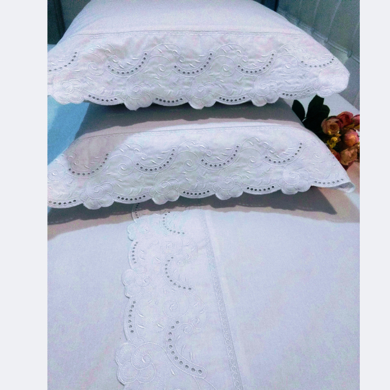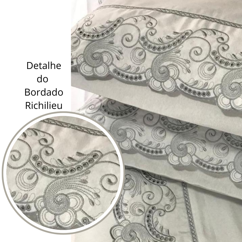 Jogo Lençol Solteiro 3 Peças 100% Algodão 400 Fios Bordado Richilieu