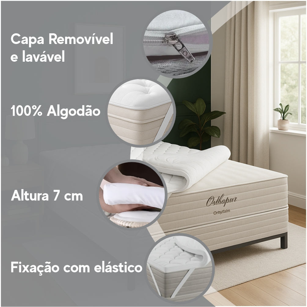 Pillow Top Protetor de Colchão Ortobom 200 fios 100% Algodão Premium Solteiro Casal Queen e King