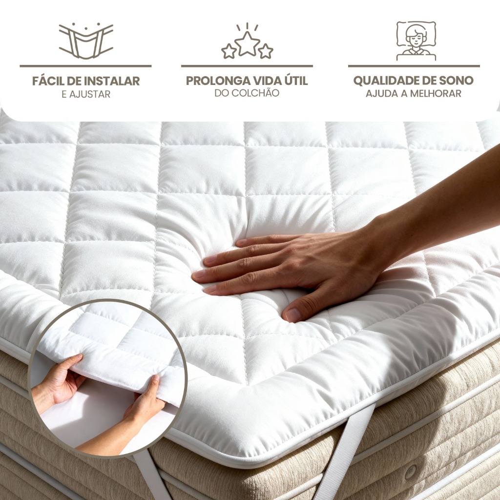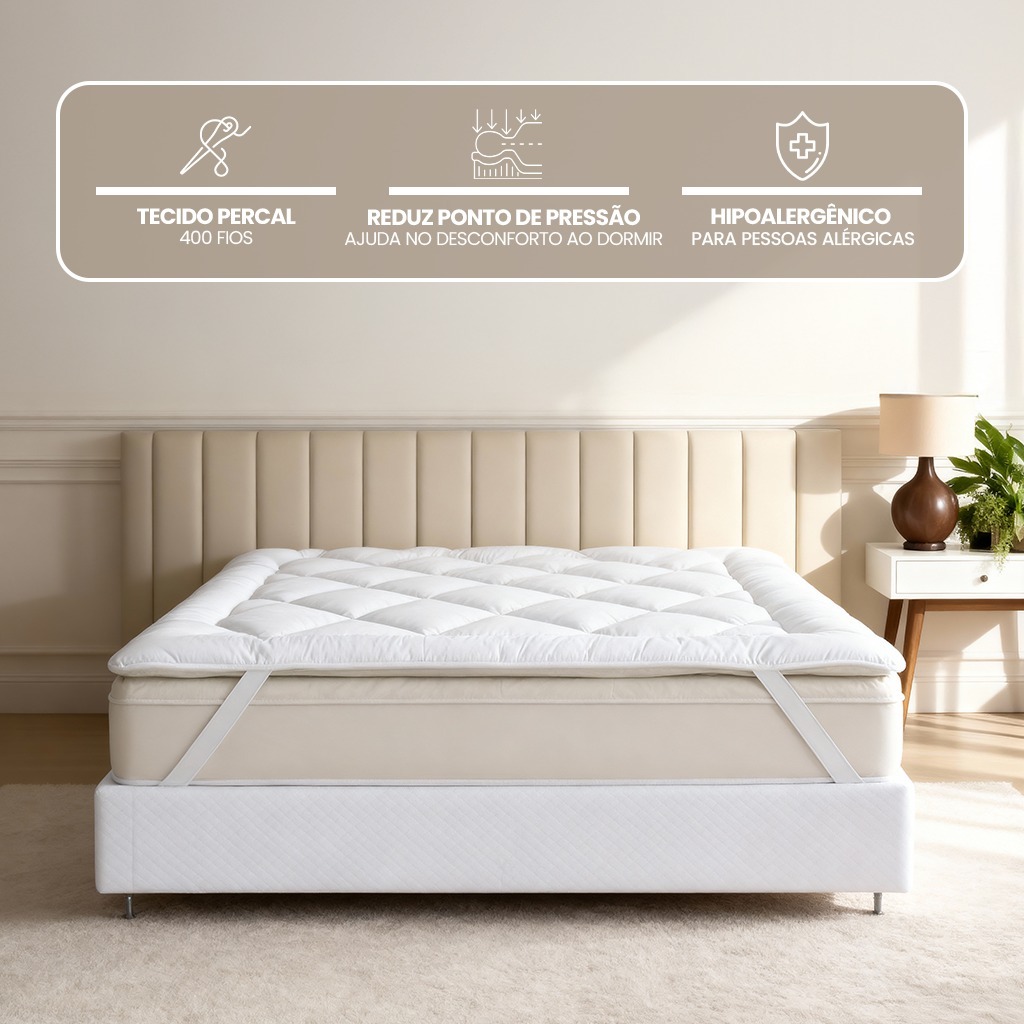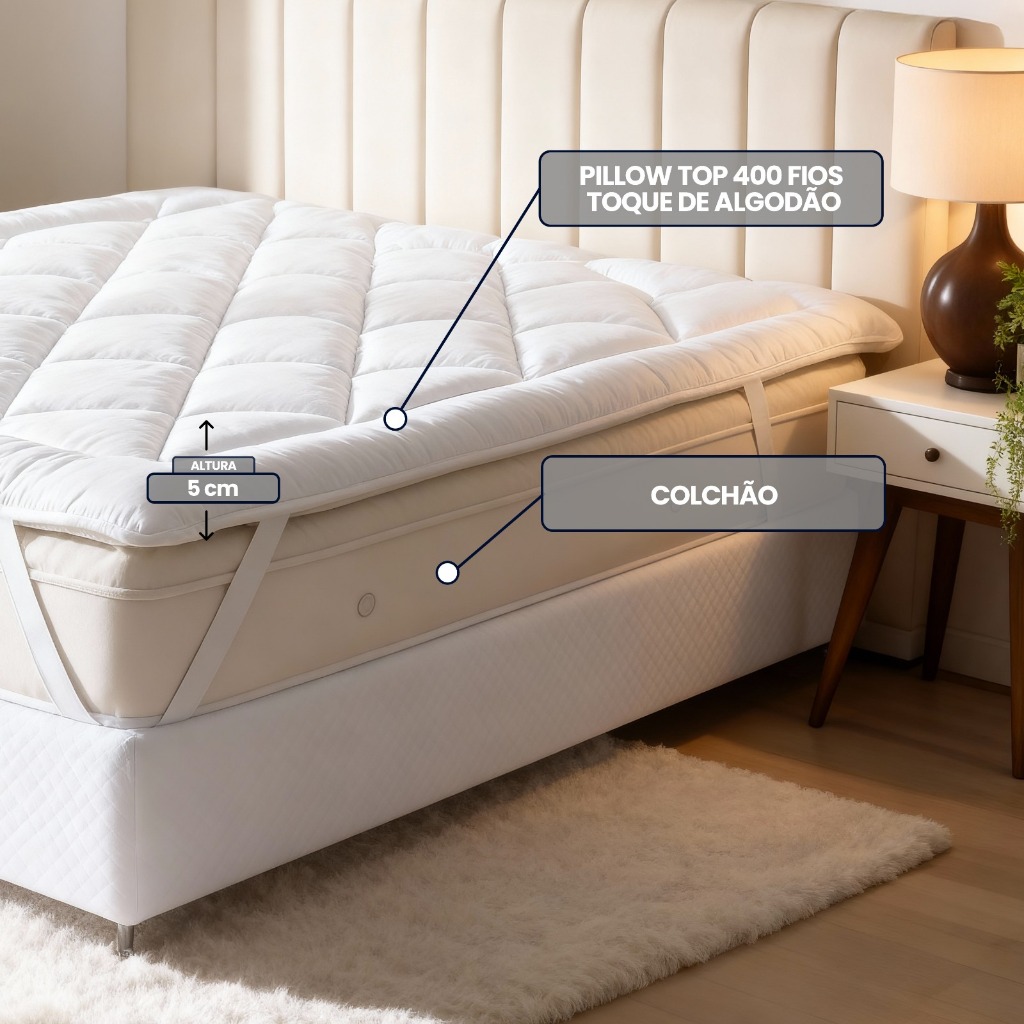 Pillow Top Protetor de Colchão 400 Fios Super Macio Premium Solteiro, Casal, Queen e King Casa Dona