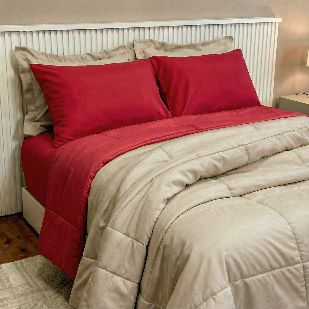 Kit Edredom Casal Queen 06 Peças Dupla Face Mais 2 Travesseiros 200 Fios Hipoalérgico Casa Dona