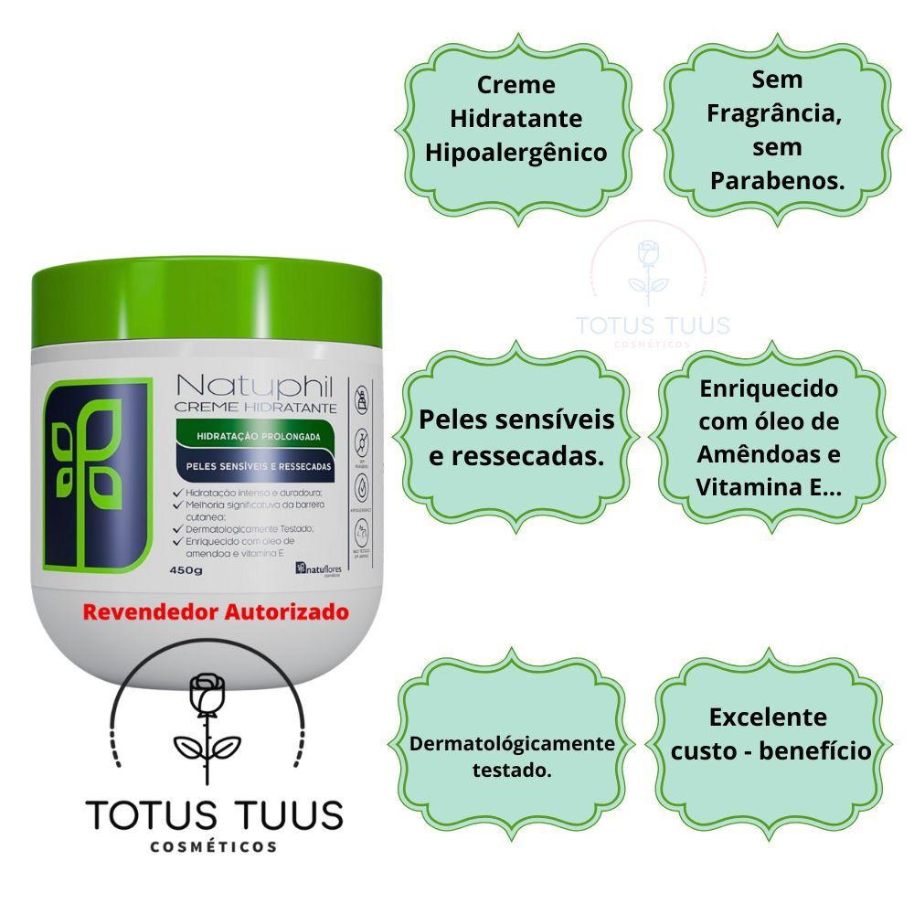 Creme Hidratante Para O Corpo Natuphil 450g Pele Secas Sensíveis Hipoalergênico, Ressecada Sem Cheiro;