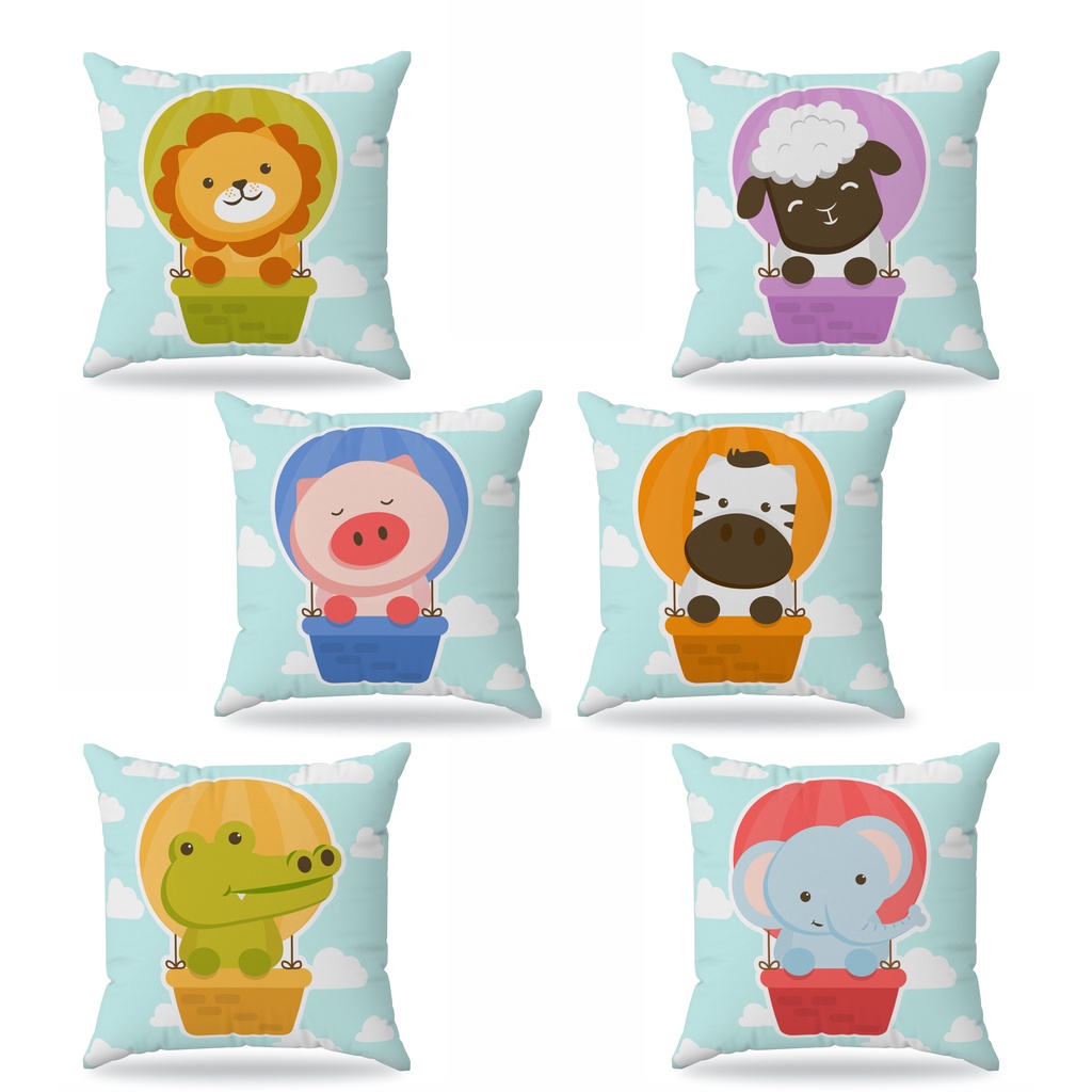 Kit 6 almofadas cheias - Decoração infantil animais baby balão 30x30cm