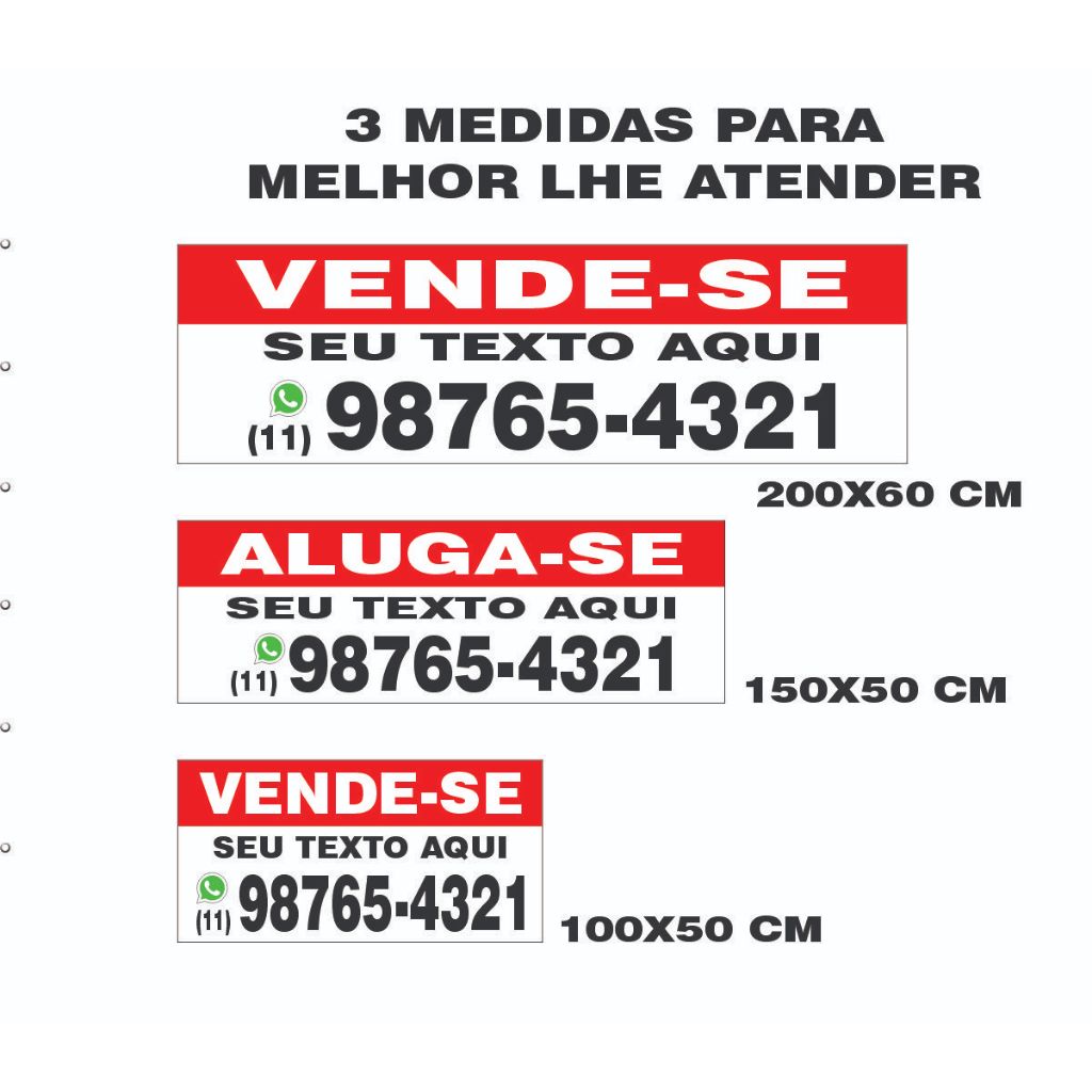 Faixa Lona - Aluga-se Ou Vende-se Com Telefone e Texto Personalizado para sua Casa, Prédio Terreno