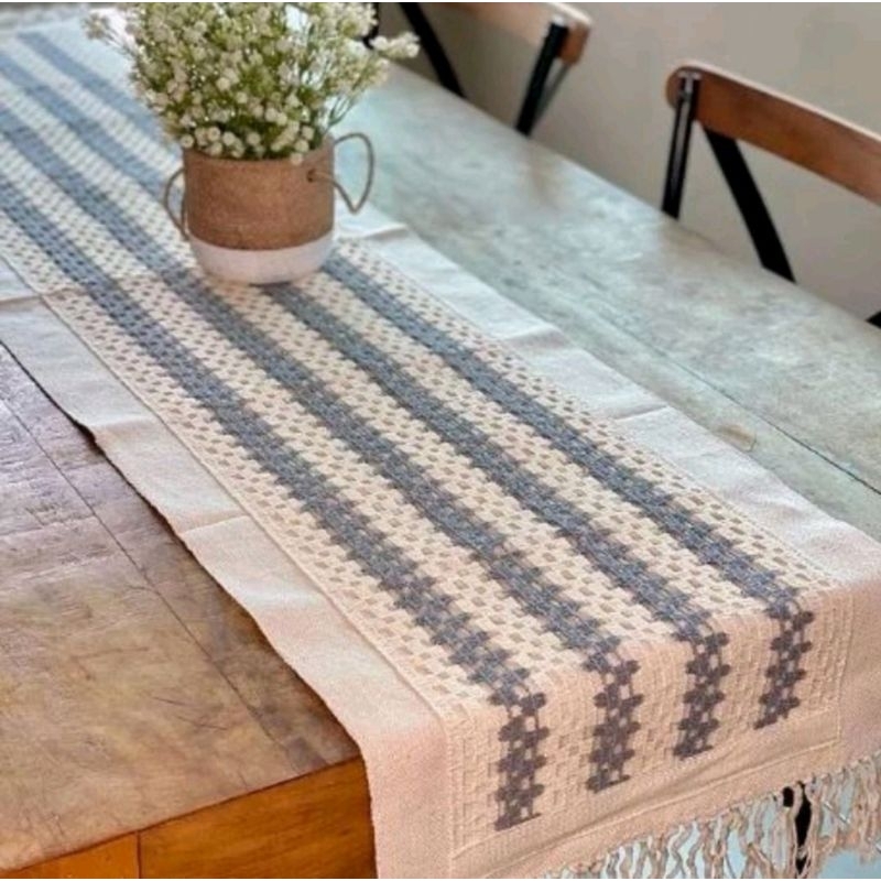 Caminho Trilho de Mesa Sala Cozinha Algodao com Detalhes em Croche Franja Vermelho Preto Cinza Decoraçao