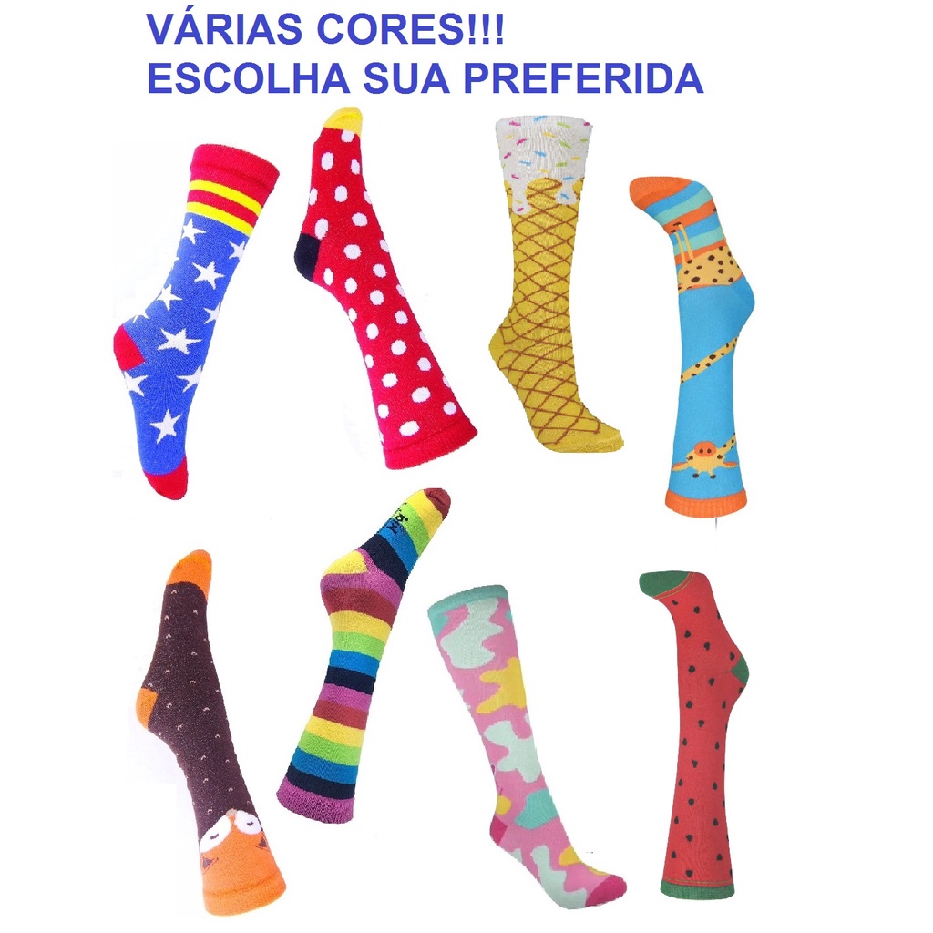 Meia 3/4 Menina Modinha Adulto e Infantil Cano Alto Algodão