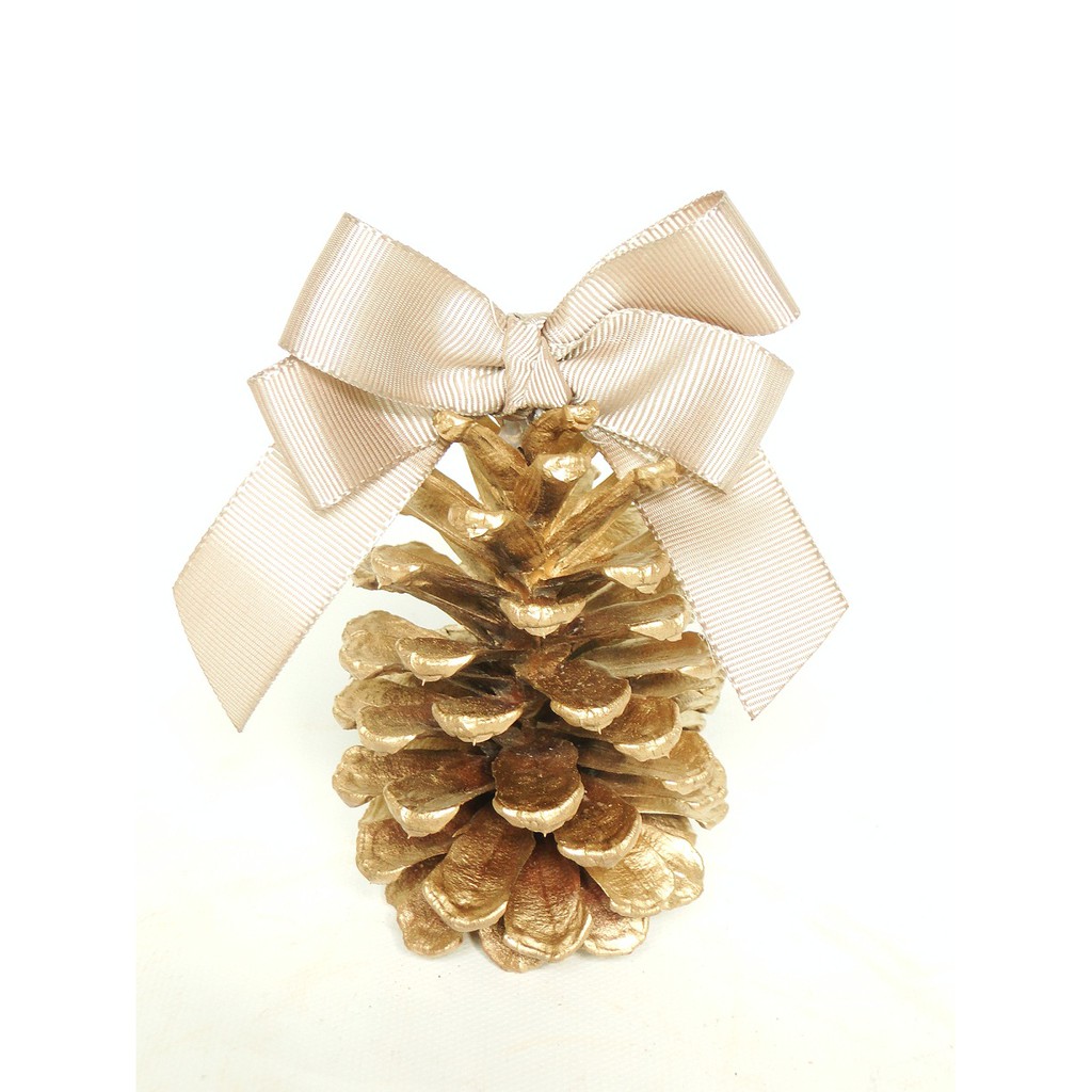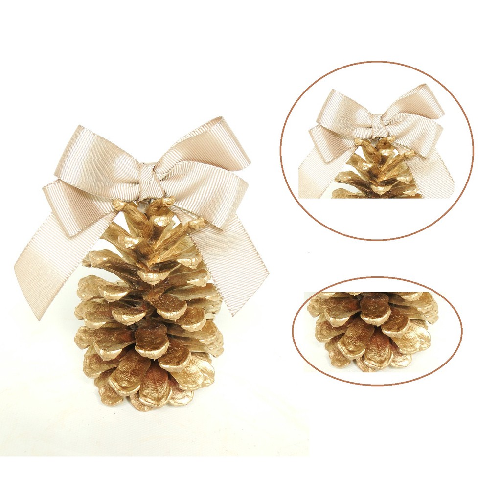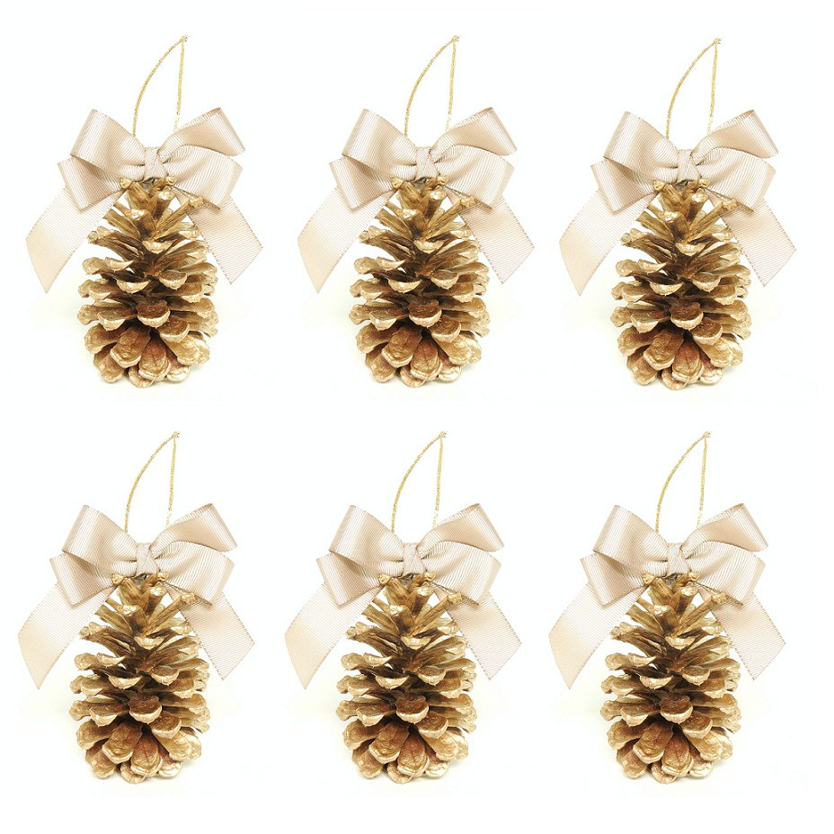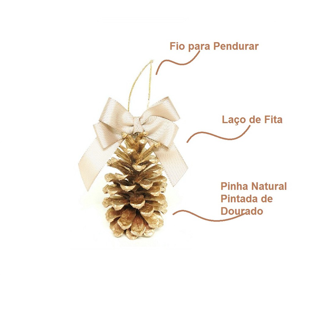 Enfeite Para Árvore de Natal 6 Pinhas Naturais Douradas Com Laço