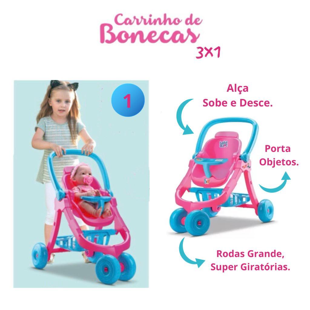 Carrinho De Boneca 3 Em 1 Reborn Articulado Grande Vira Bebe Conforto Presente Menina
