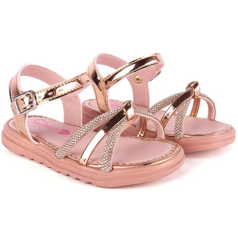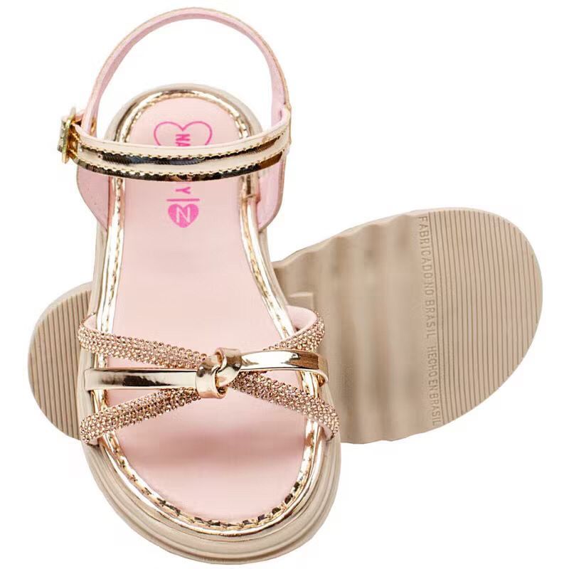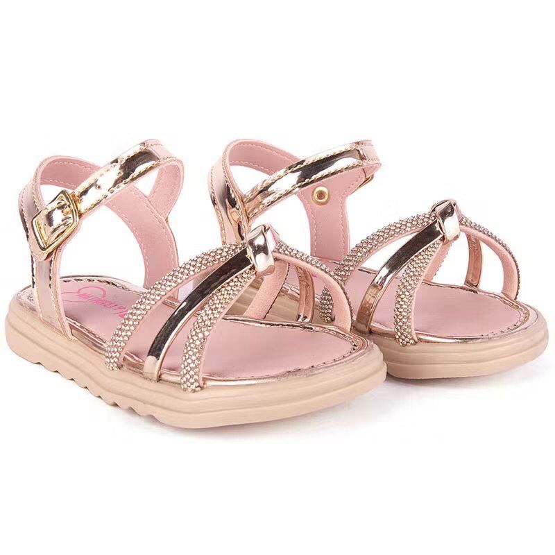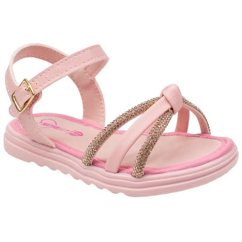 Sandália Infantil Menina Brilho Strass Nó Confortável Juvenil Criança Macio Antiderrapante Moderninha