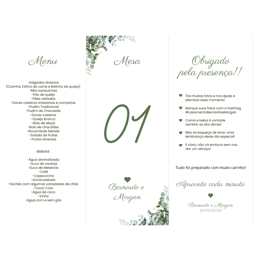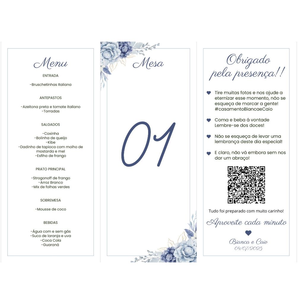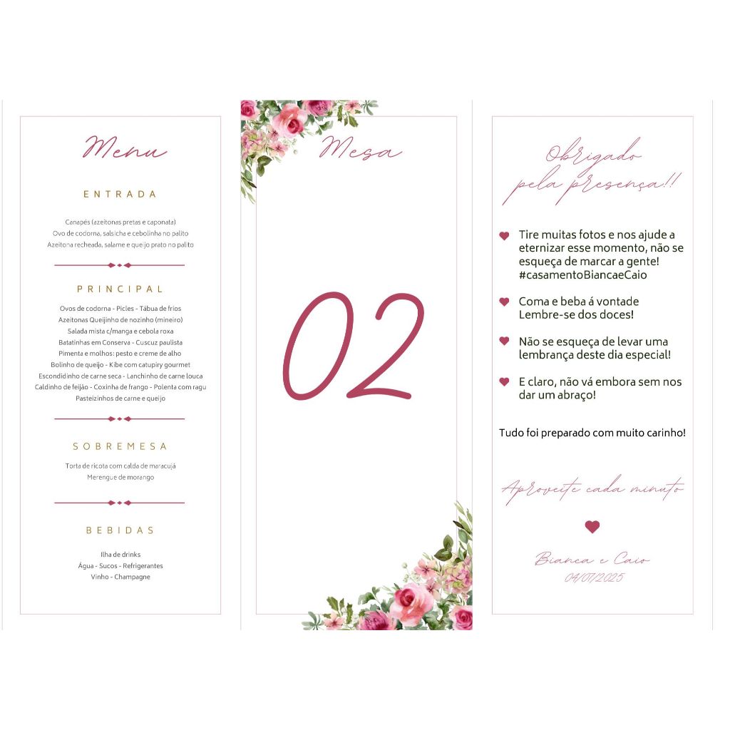 3 em 1 - Numeração de mesa, Menu e Agradecimento Triangular Para Mesa De Festa De Casamento, Aniversário, Festividade