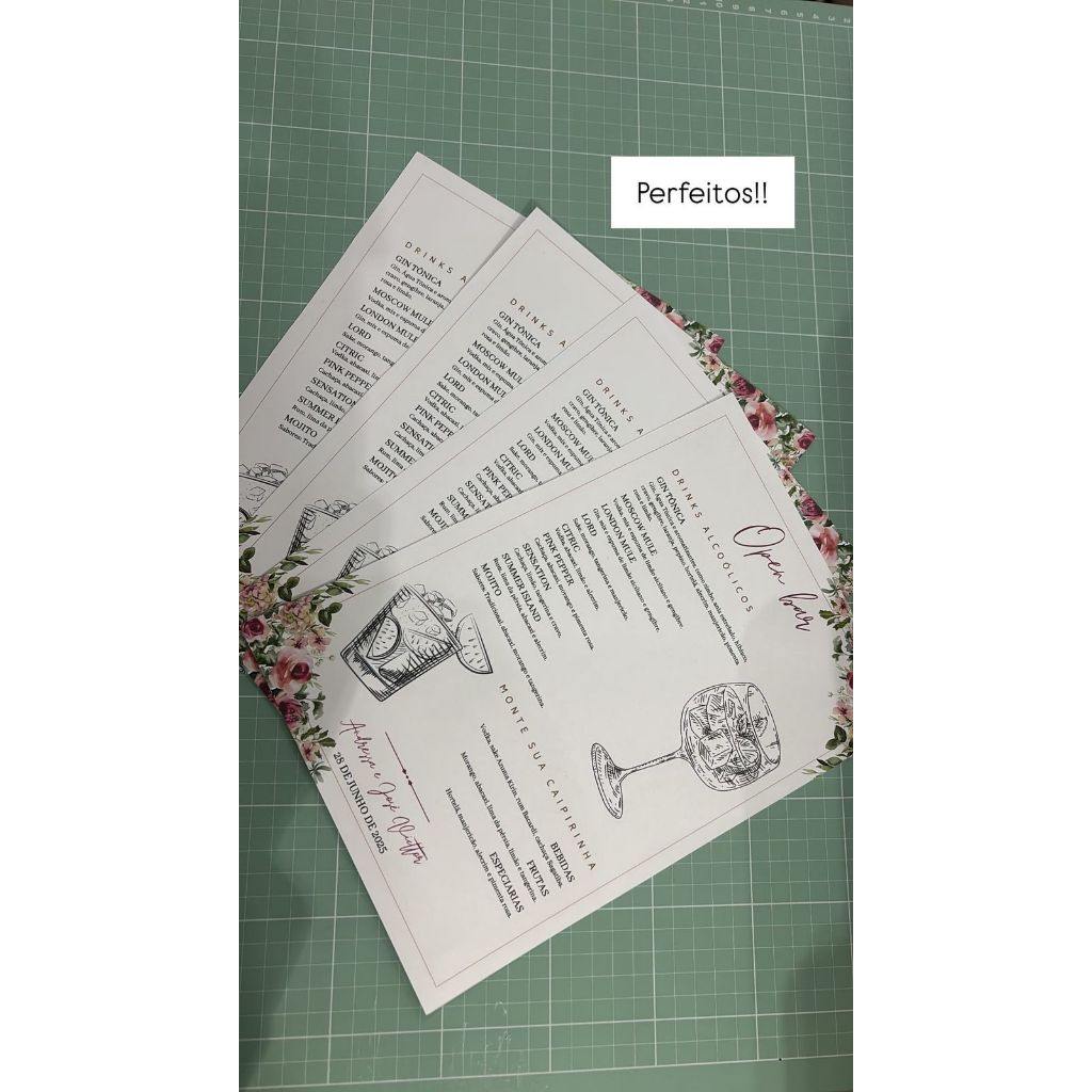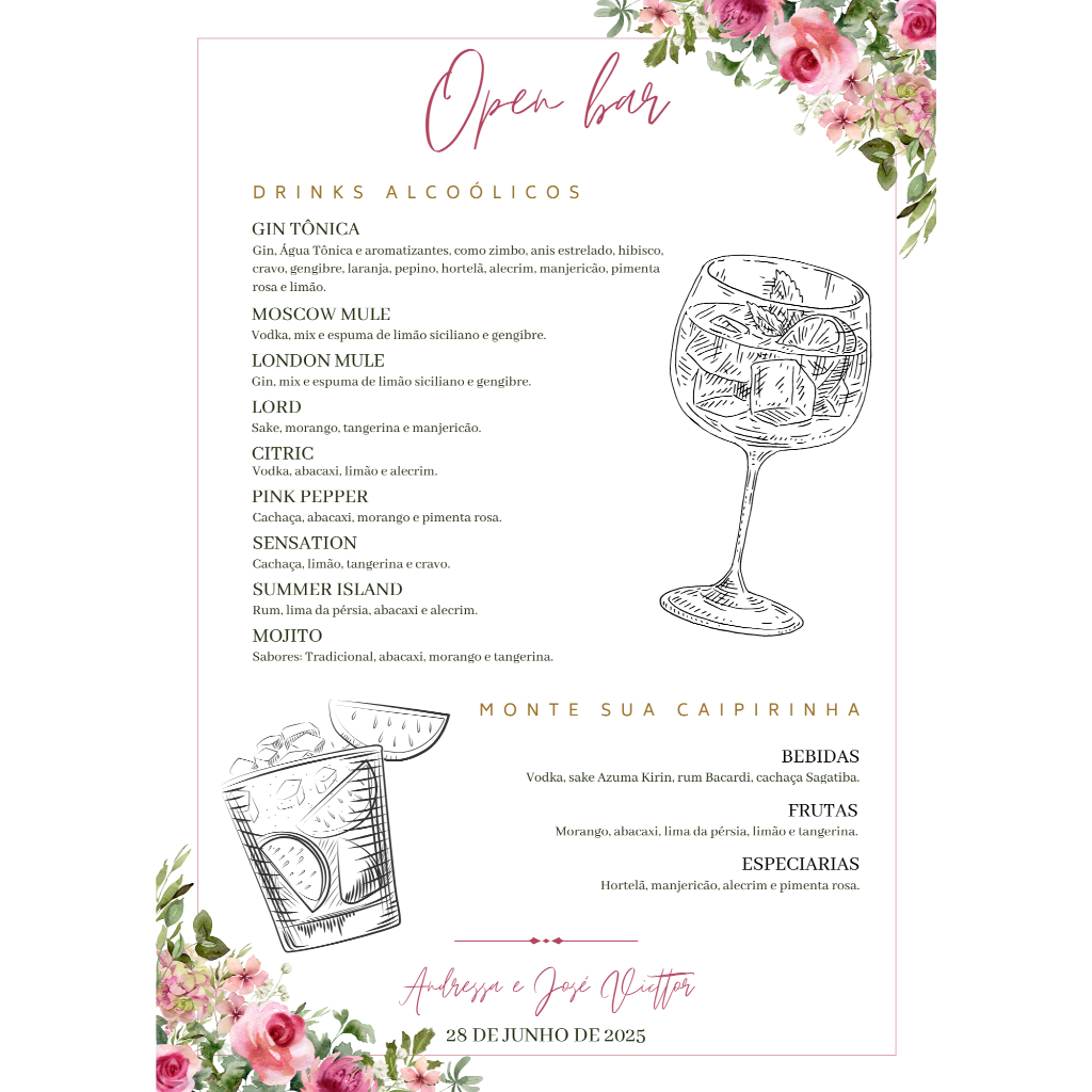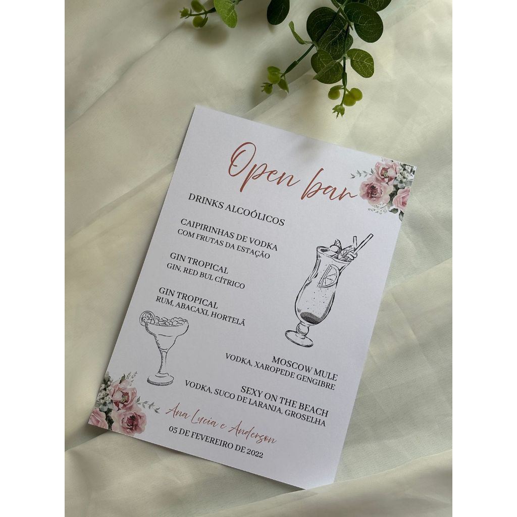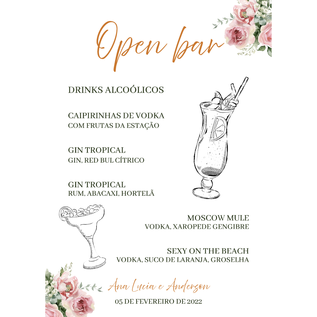 Menu Cardápio Drinks Casamento Festa Eventos Bar Coquetel Personalizado