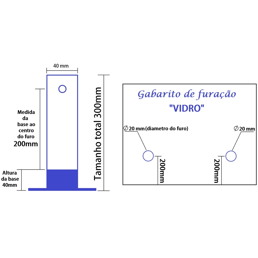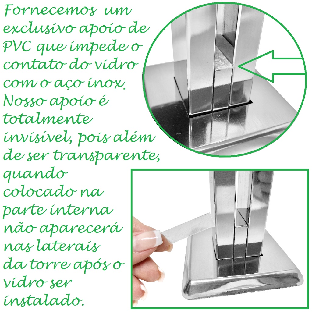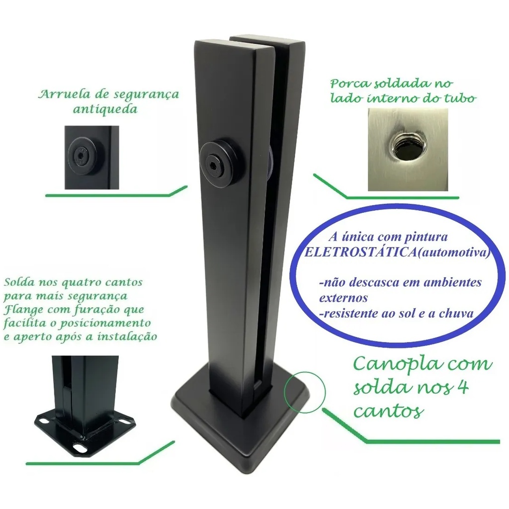 Coluna Torre de Inox 30 cm PRETO FOSCO para Guarda Corpo de vidro.