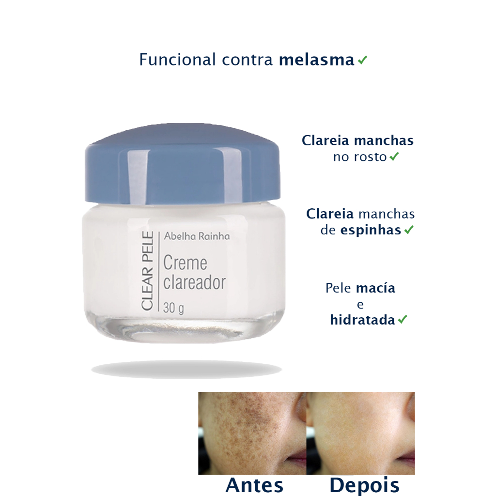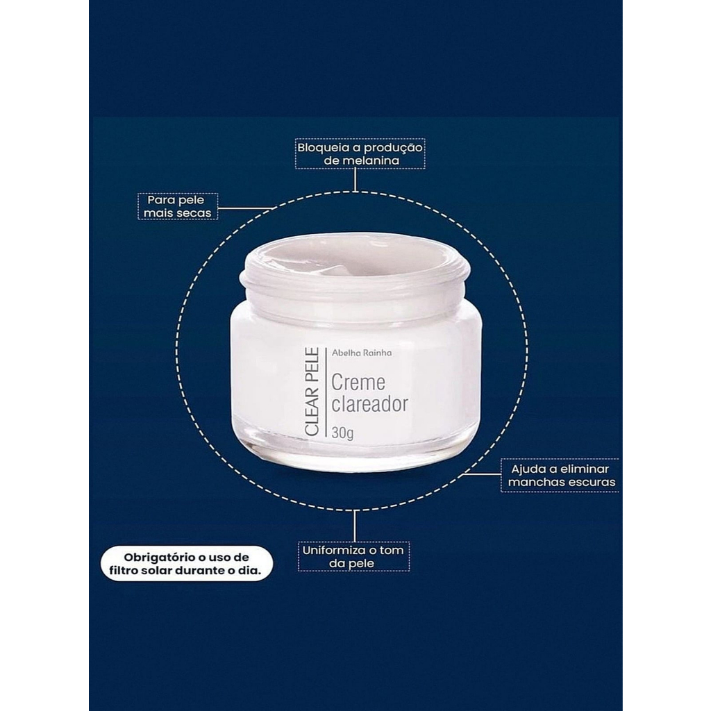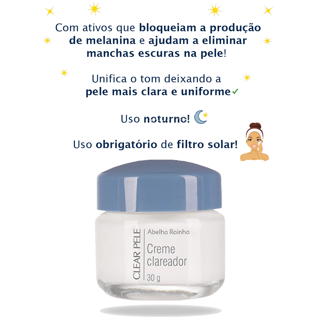 Kit 2x Creme Facial Clareador Noturno Clear Pele Abelha Rainha 30g