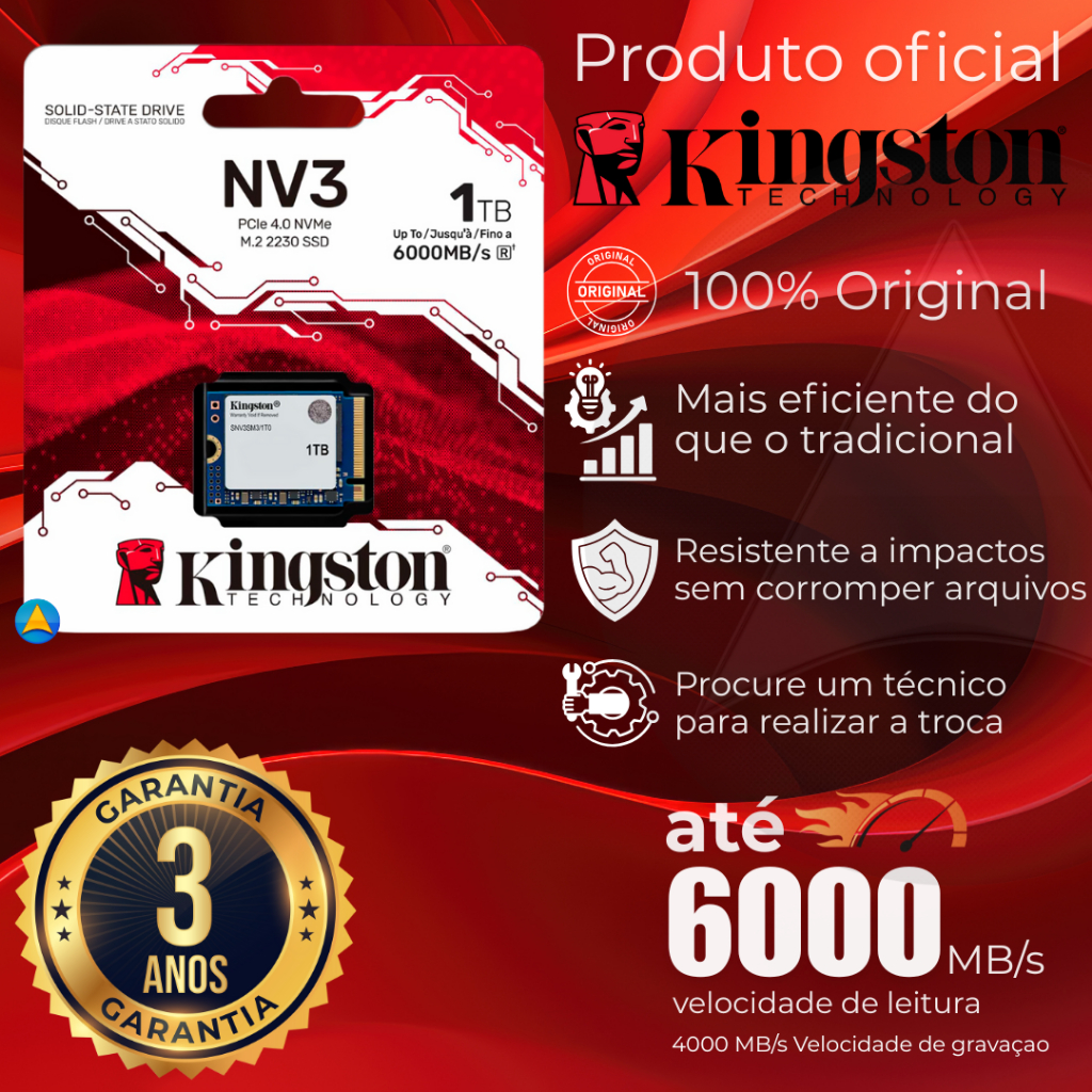 SSD NVME Mini M.2 Kingston 500GB/ 1TB /2TB e 4TB NVMe PCIe 4.0 - SNV3S Para Notebook e PC Original