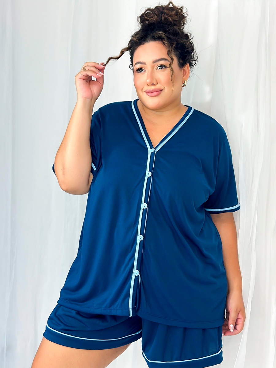 Pijama Plus Size Feminino Baby Doll Botão Funcional Americano Conforto Amamentação Pós Cirúrgico