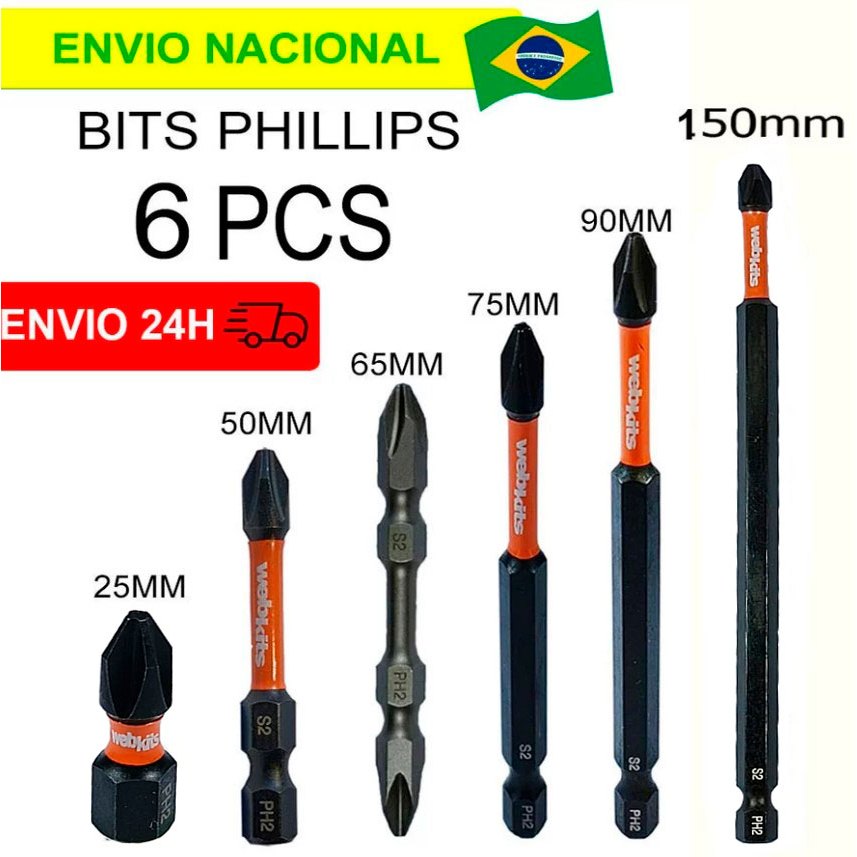 6PCS Bits Phillips Magnético De Impacto PH2 Alta Dureza